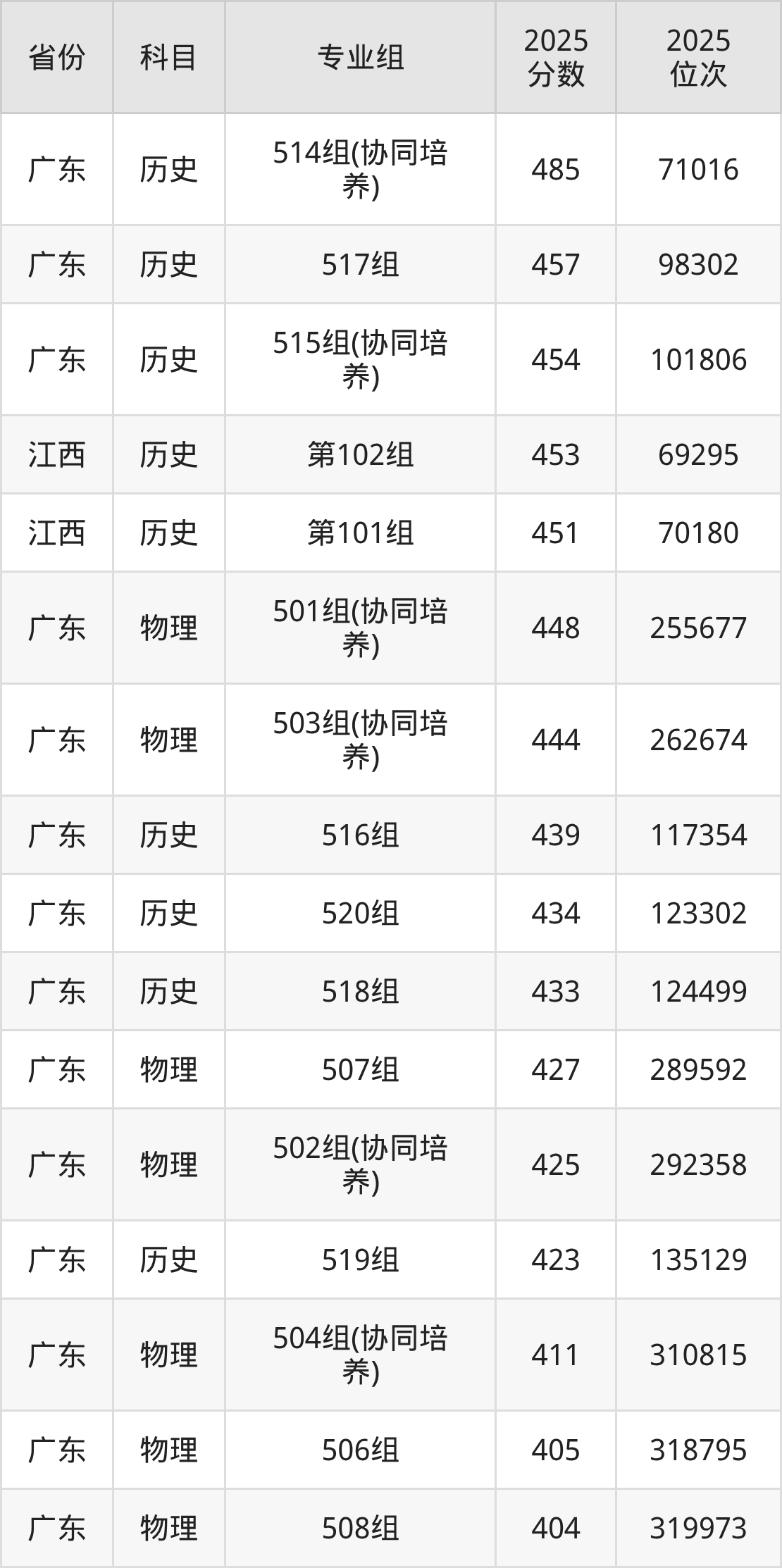 2025年清远职业技术学院全国录取分数线180分到485分,录取最高在广东(历史类514组(协同培养))、录取最低在山西(历史类第001组)。