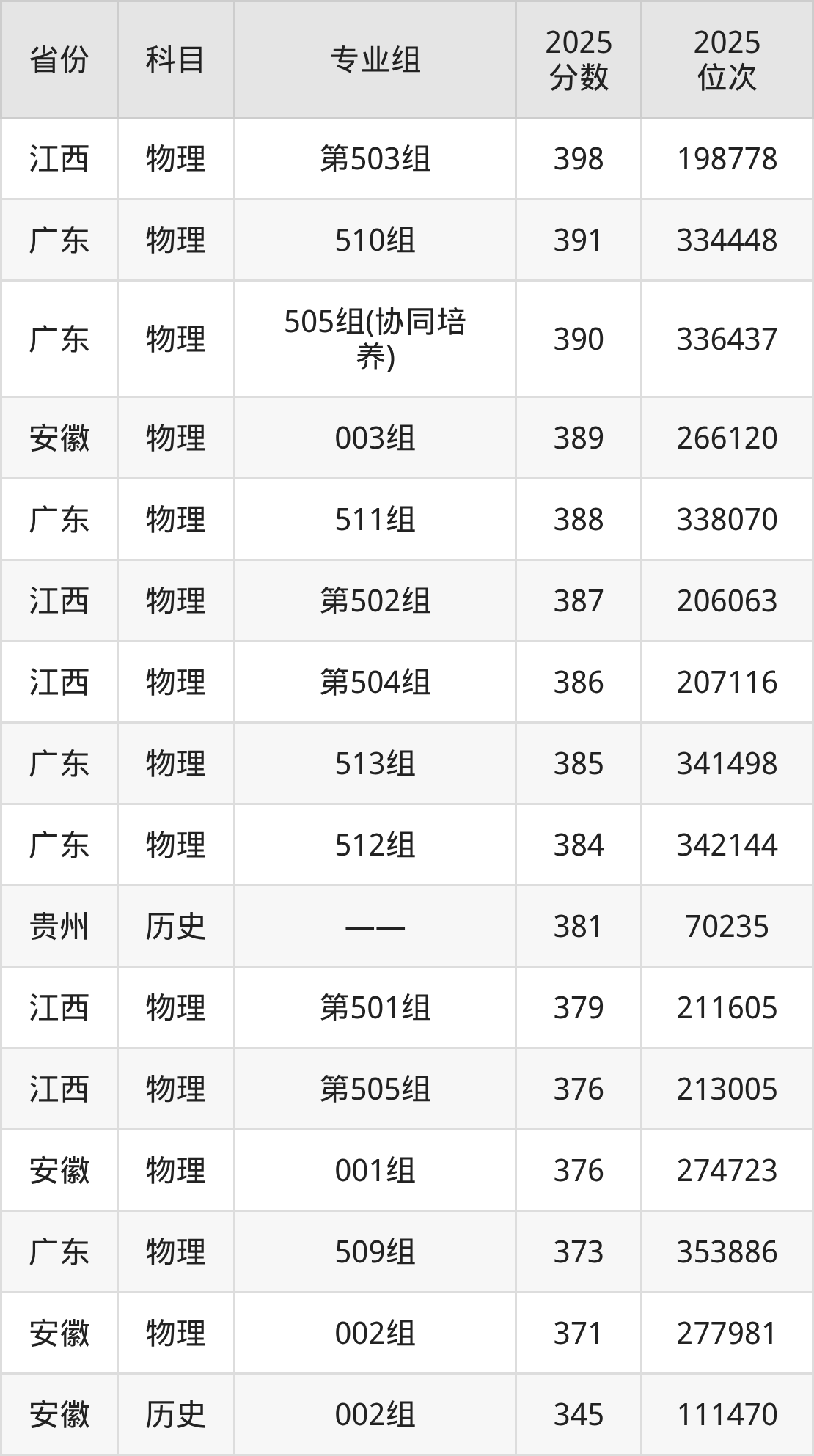 4、旅游管理:381分、位次70235名。