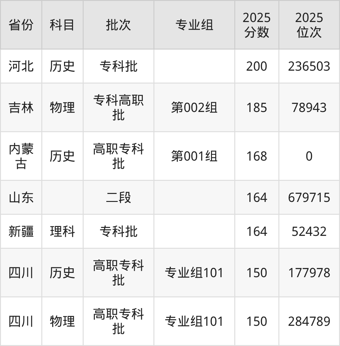 2025年天府新区航空旅游职业学院全国录取分数线150分到490分,录取最高在浙江、录取最低在四川(专业组101)。