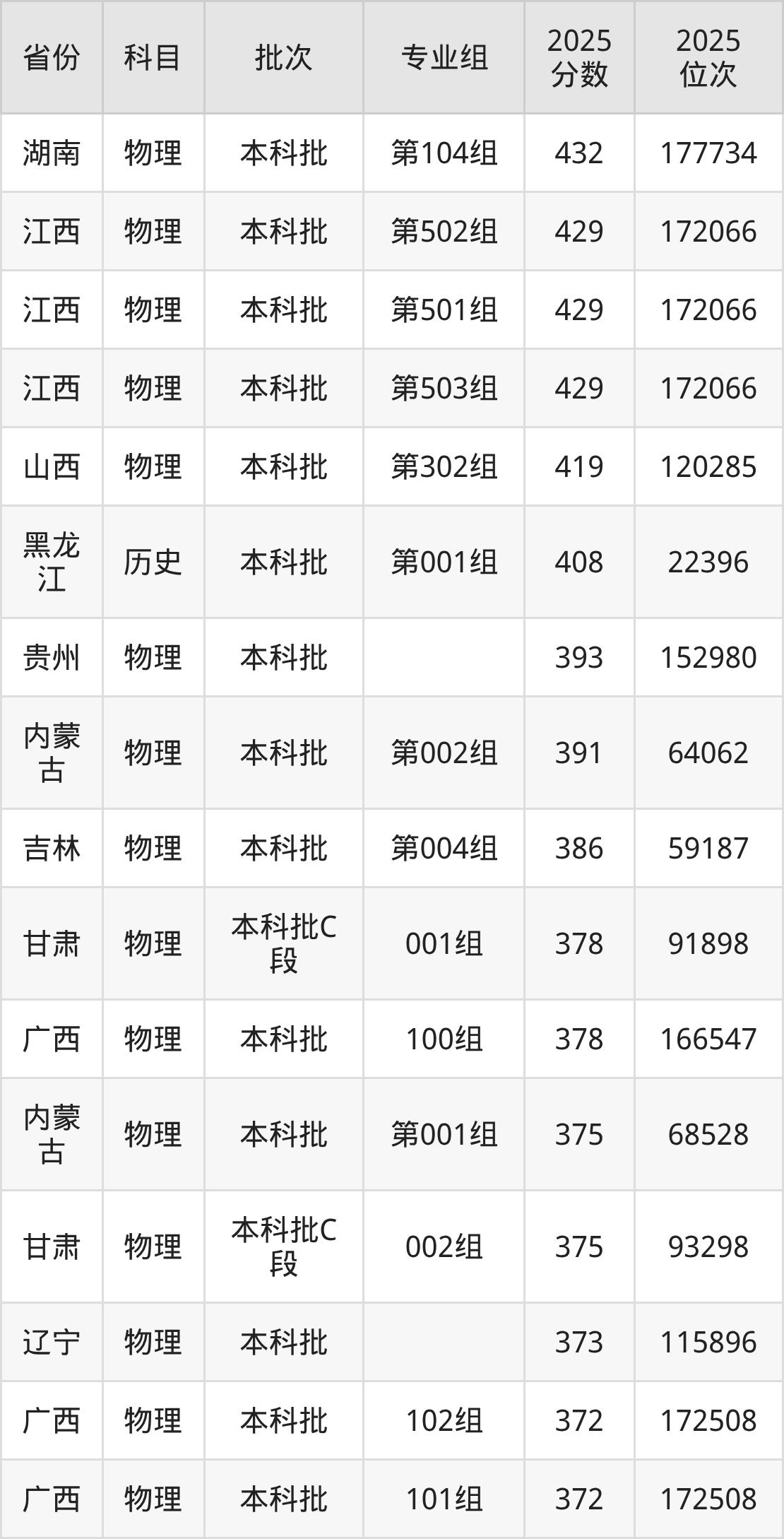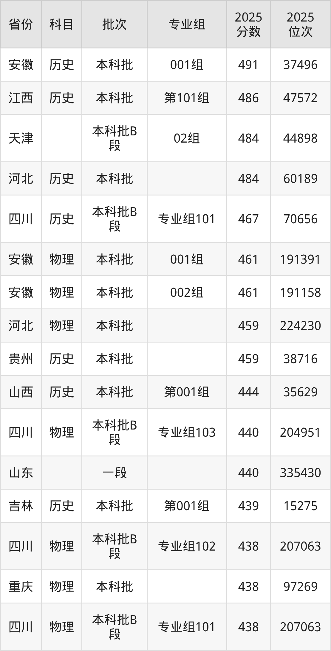 2025年齐齐哈尔工程学院全国录取分数线285分到491分,录取最高在安徽(001组)、录取最低在新疆(理科)。