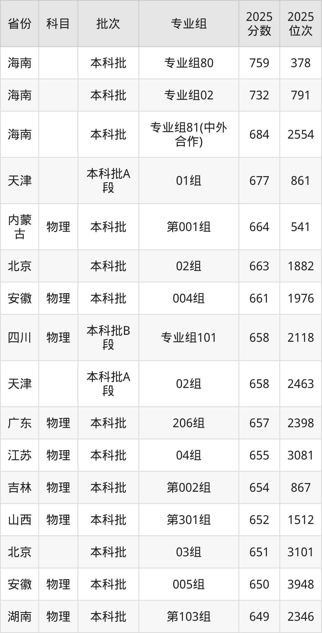 2025年北京邮电大学全国录取分数线549分到759分,录取最高在海南(专业组80)、录取最低在宁夏(0A1专业组(国家专项))。