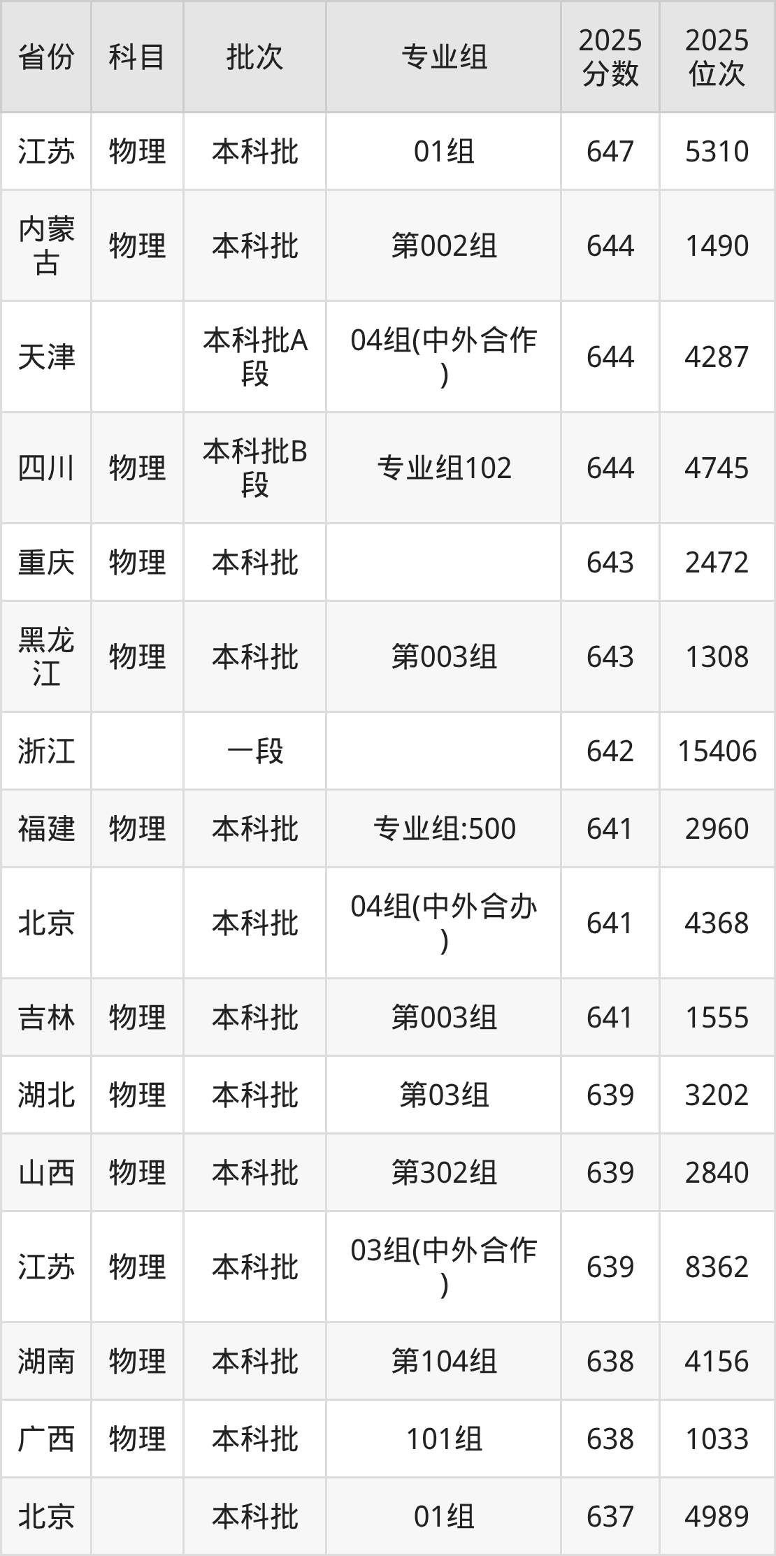 下面是2025年北京邮电大学在全国各省录取最低分数据及位次,各位考生也可作为一个参考。