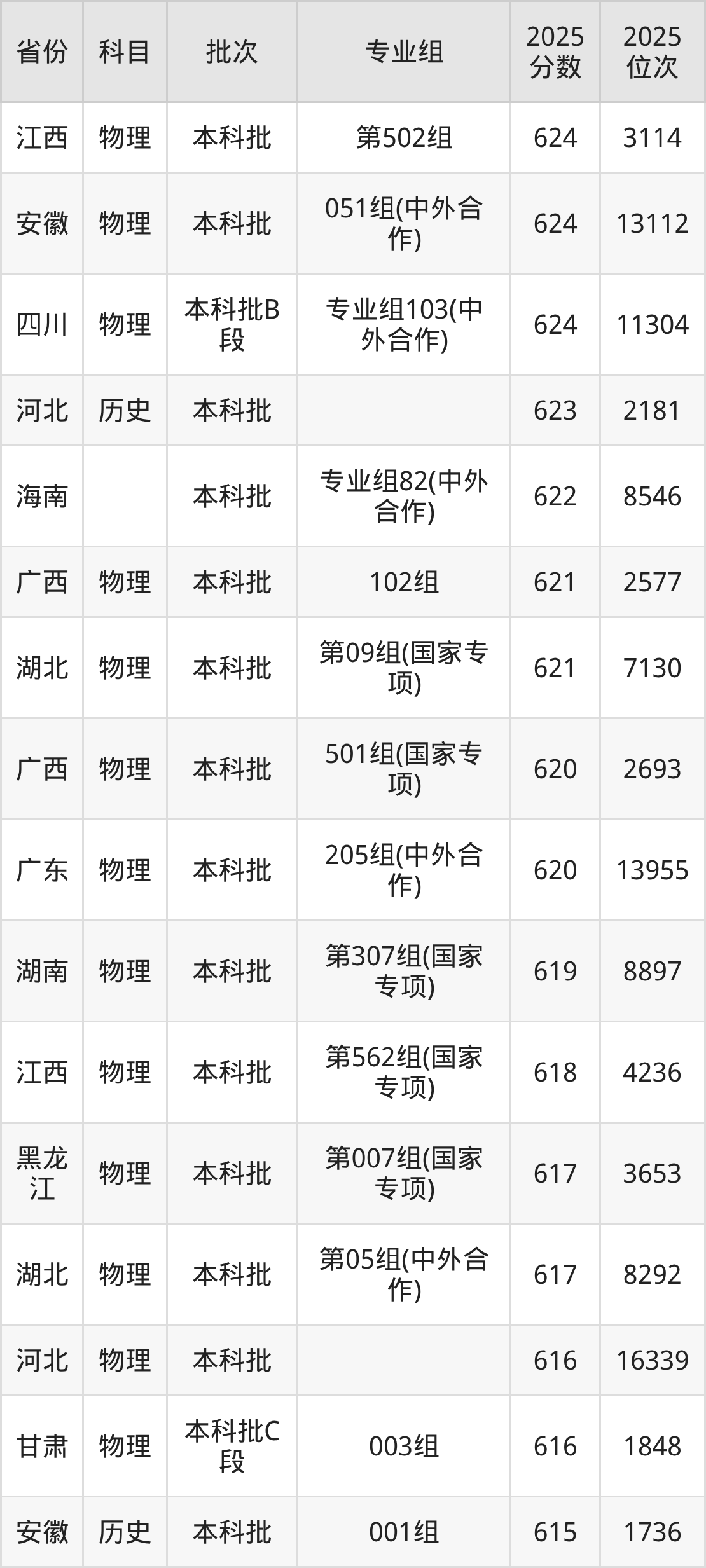 2、电子信息类(元班)(未来学院“元班”实验班)(包含专业:通信工程、电子科学与技术):656分、位次2525名;