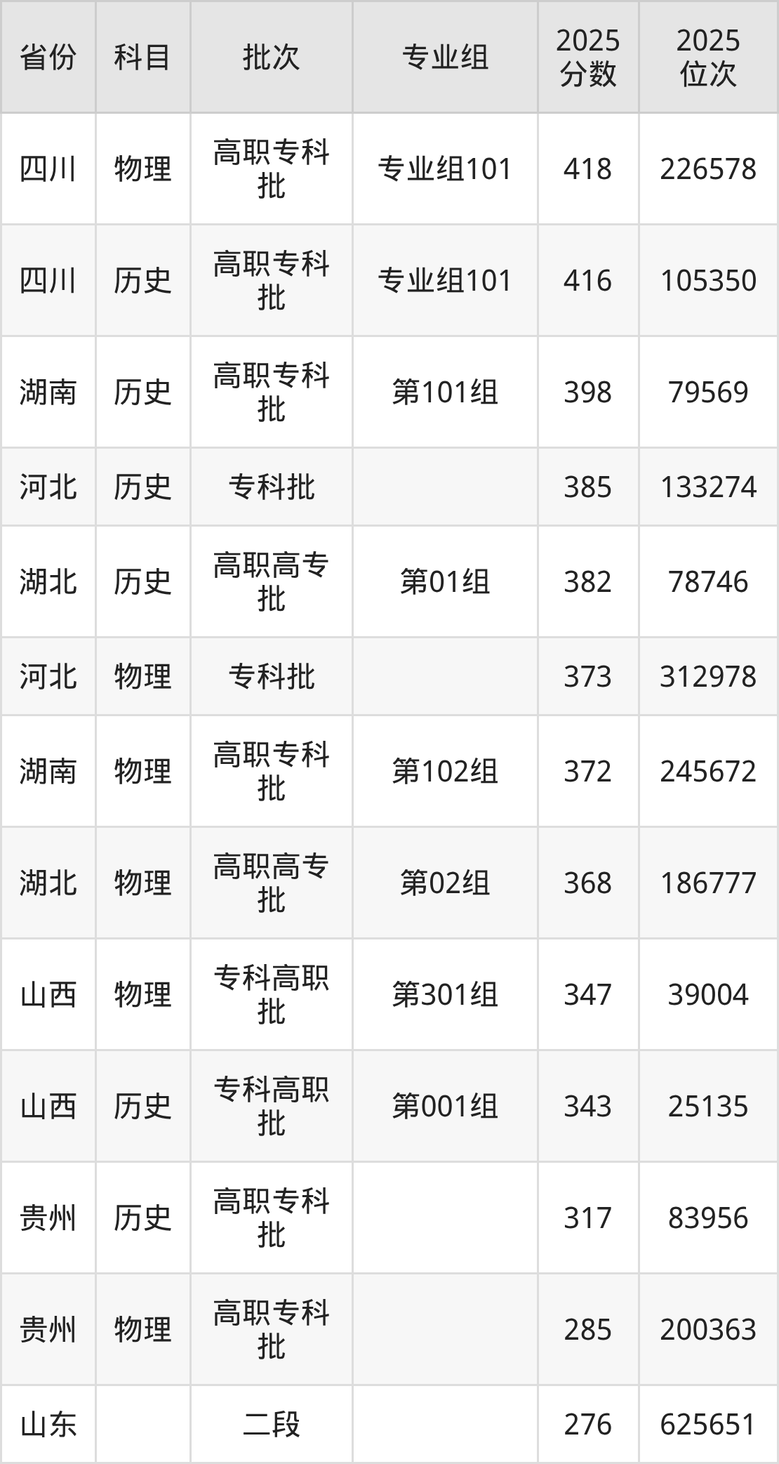 2025年三门峡社会管理职业学院全国录取分数线276分到418分,录取最高在四川(专业组101)、录取最低在山东。