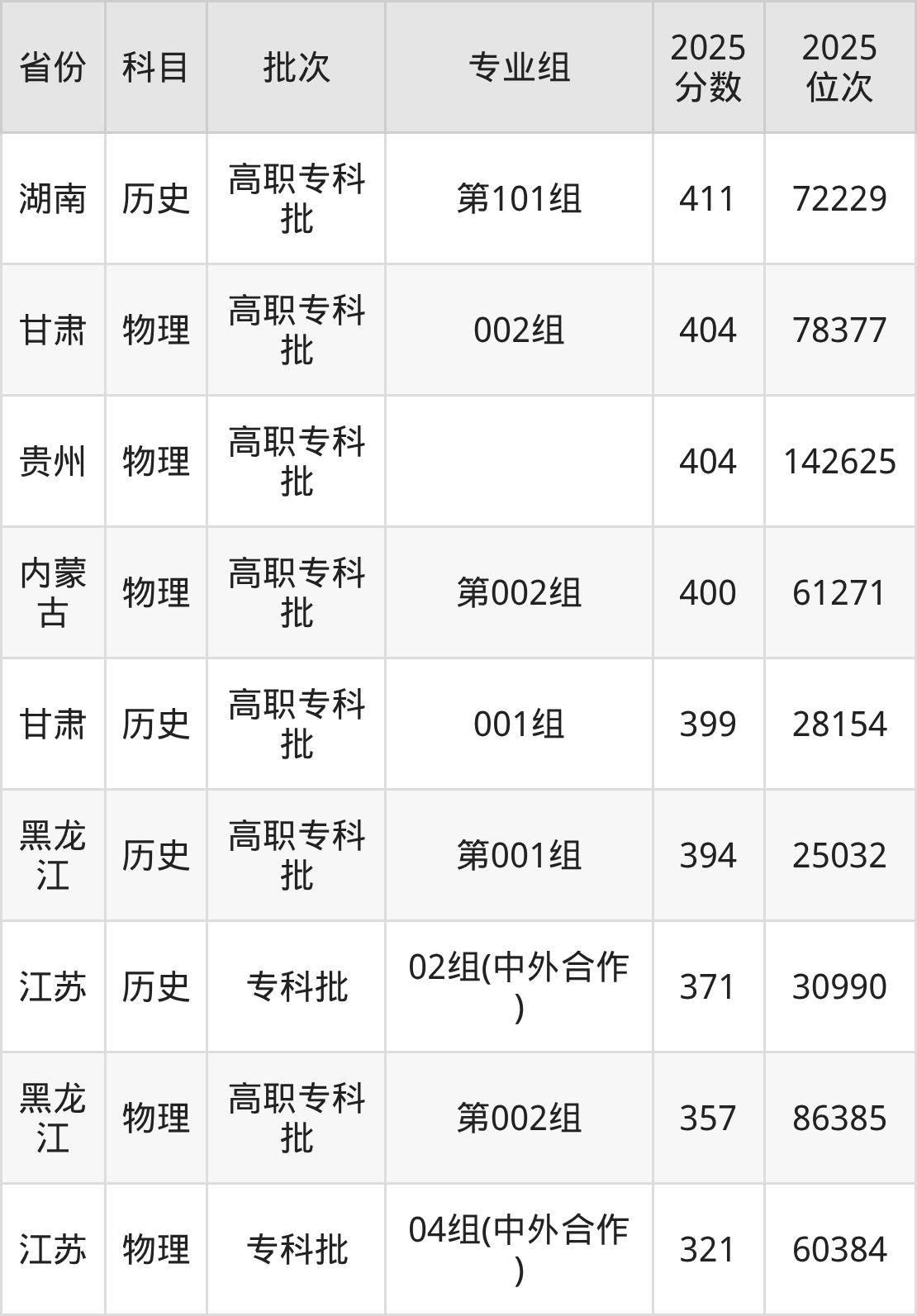 2025年常州机电职业技术学院全国录取分数线321分到490分,录取最高在浙江、录取最低在江苏(04组(中外合作))。
