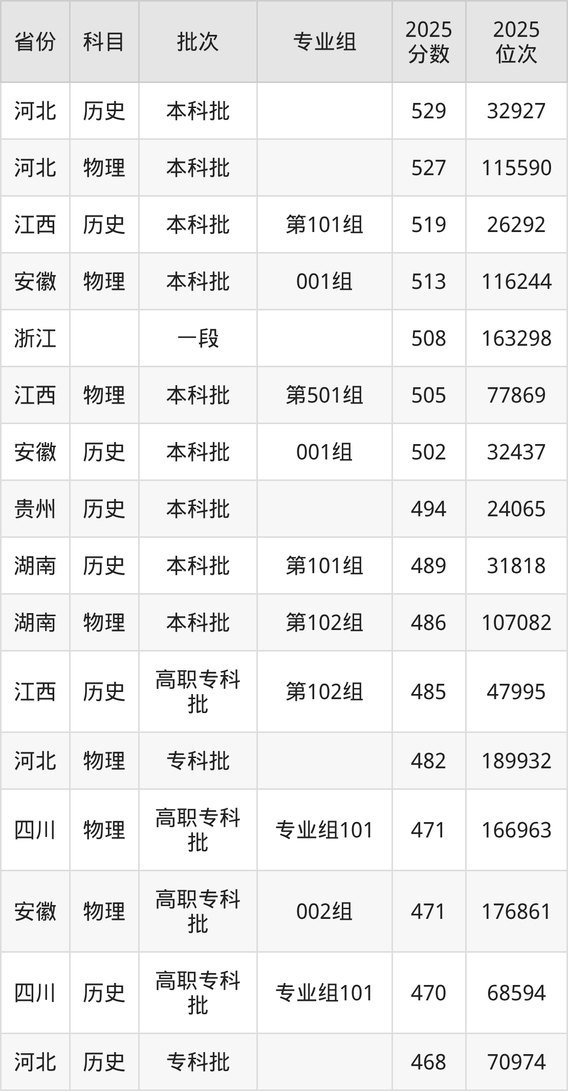 下面是2025年浙江机电职业技术大学在全国各省录取最低分数据及位次,各位考生也可作为一个参考。