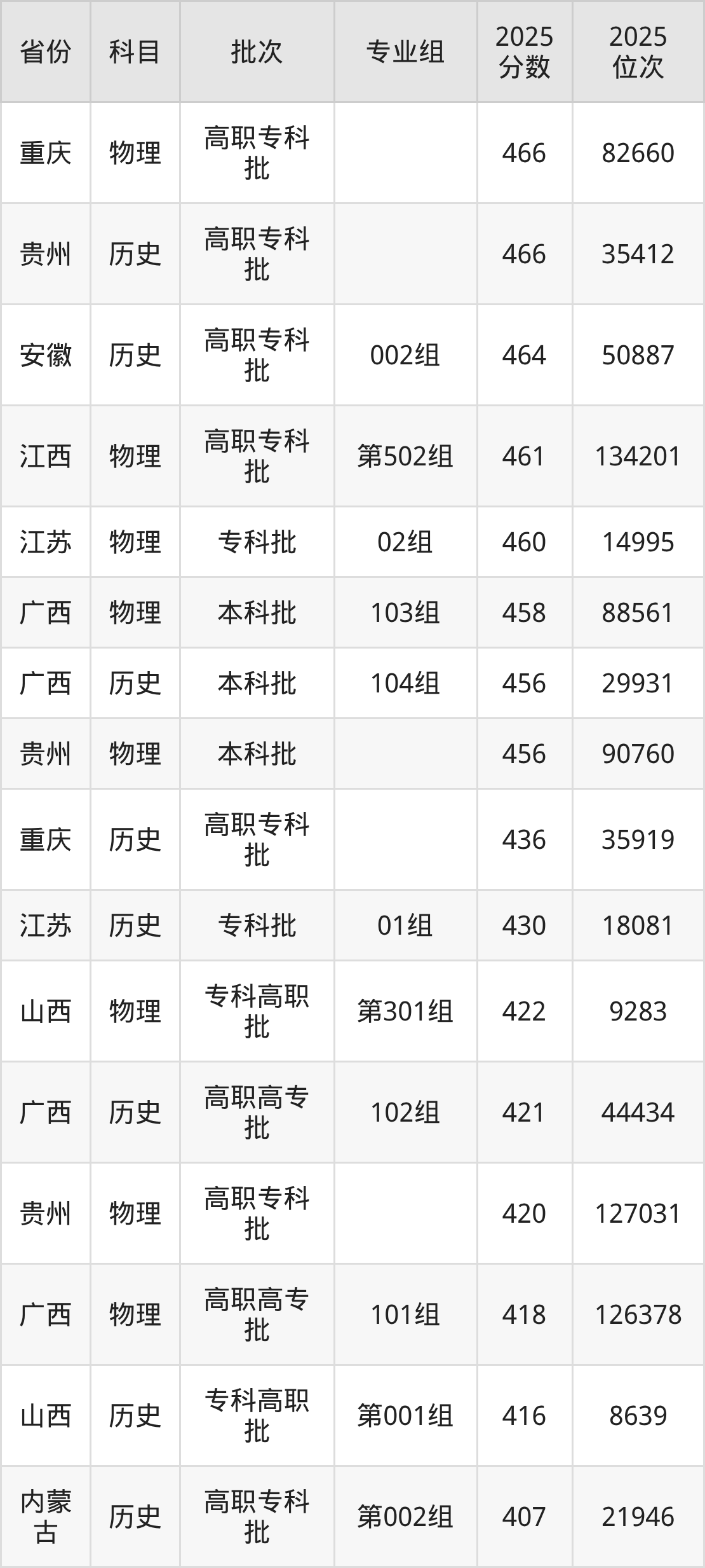 2025年浙江机电职业技术大学全国录取分数线380分到529分,录取最高在河北(历史)、录取最低在甘肃(001组)。