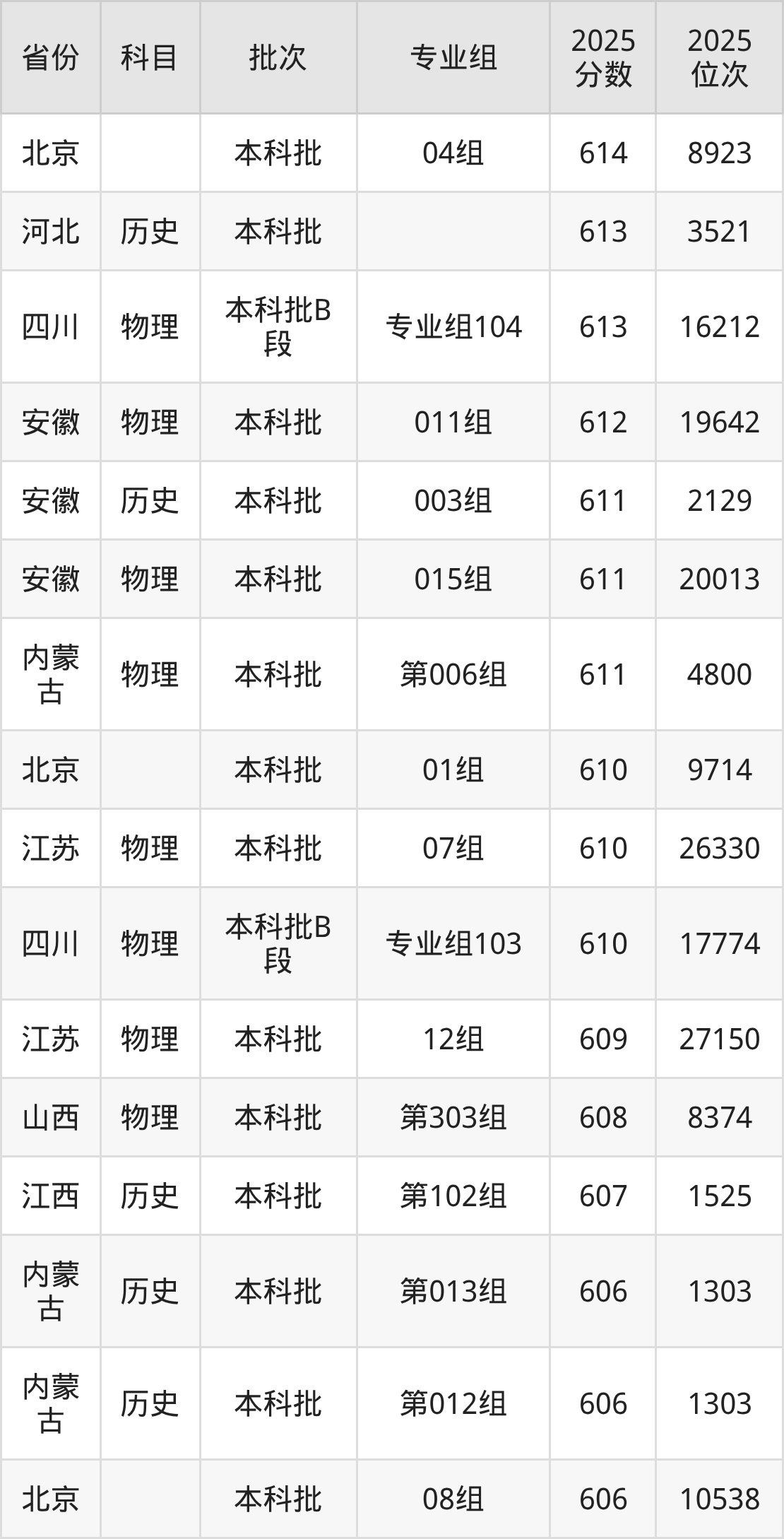 9、自动化:610分、位次18335名;