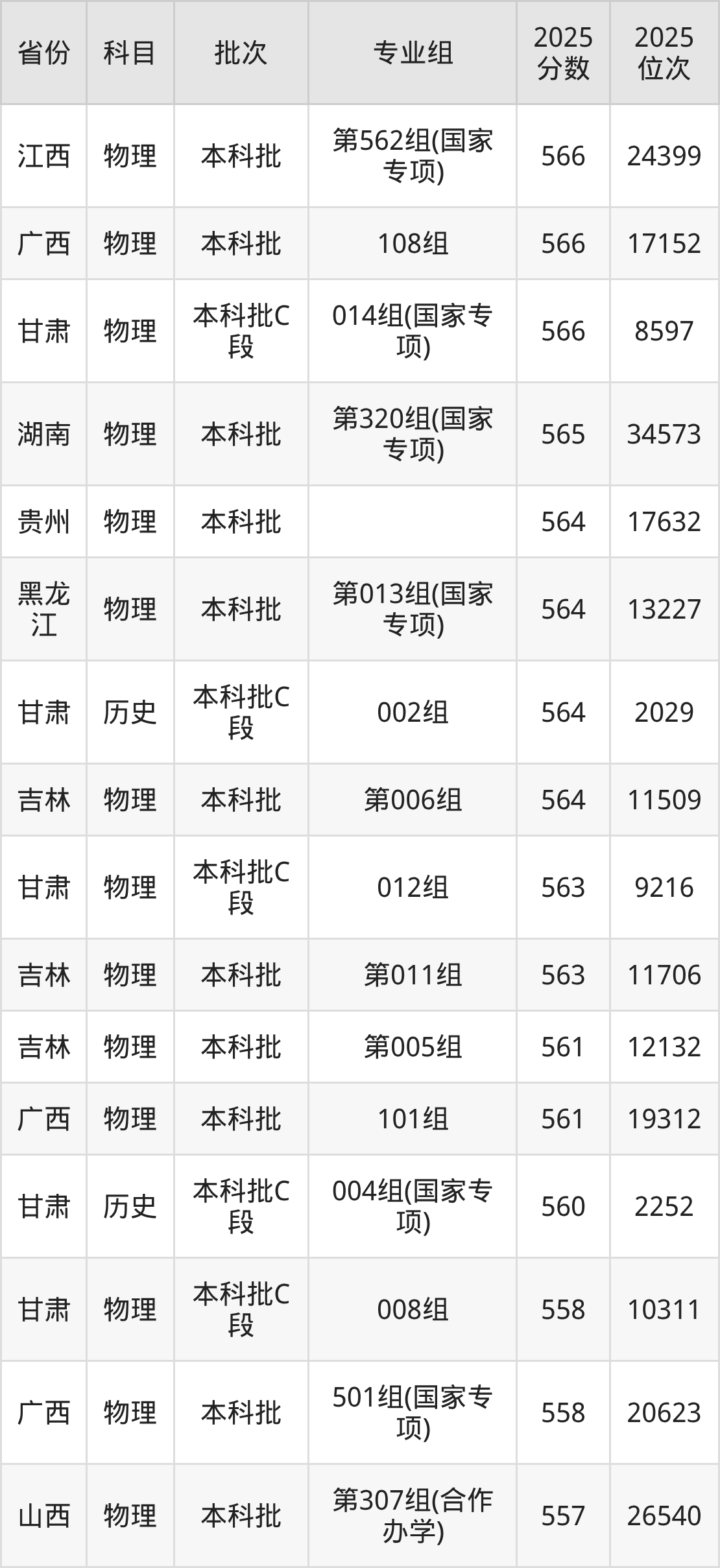 32、林学类(梁希实验班)(包含专业:林学、森林保护):593分、位次29676名;