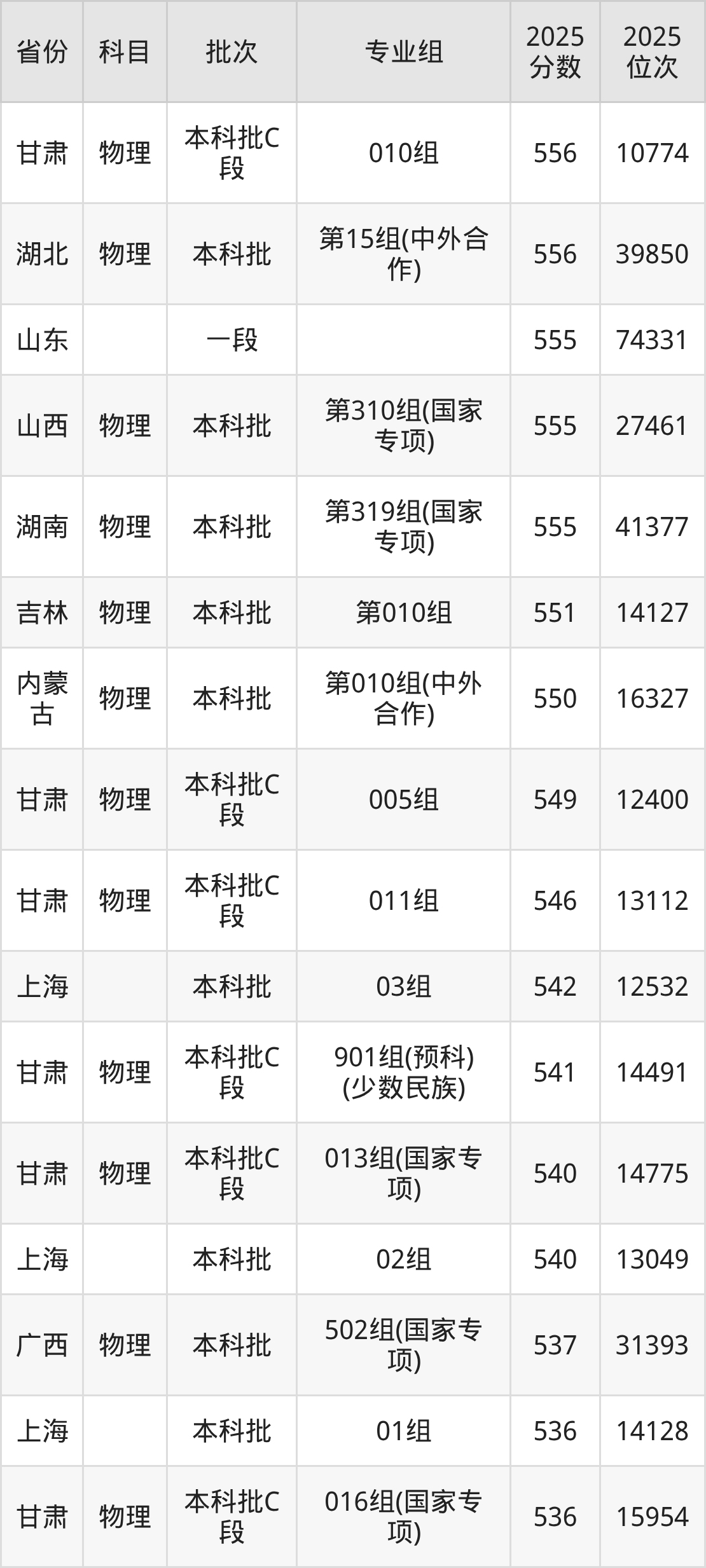 参考2025年山东省高考招录数据,按照分数线从高到低依次为大家展示北京林业大学各个专业录取分数线。