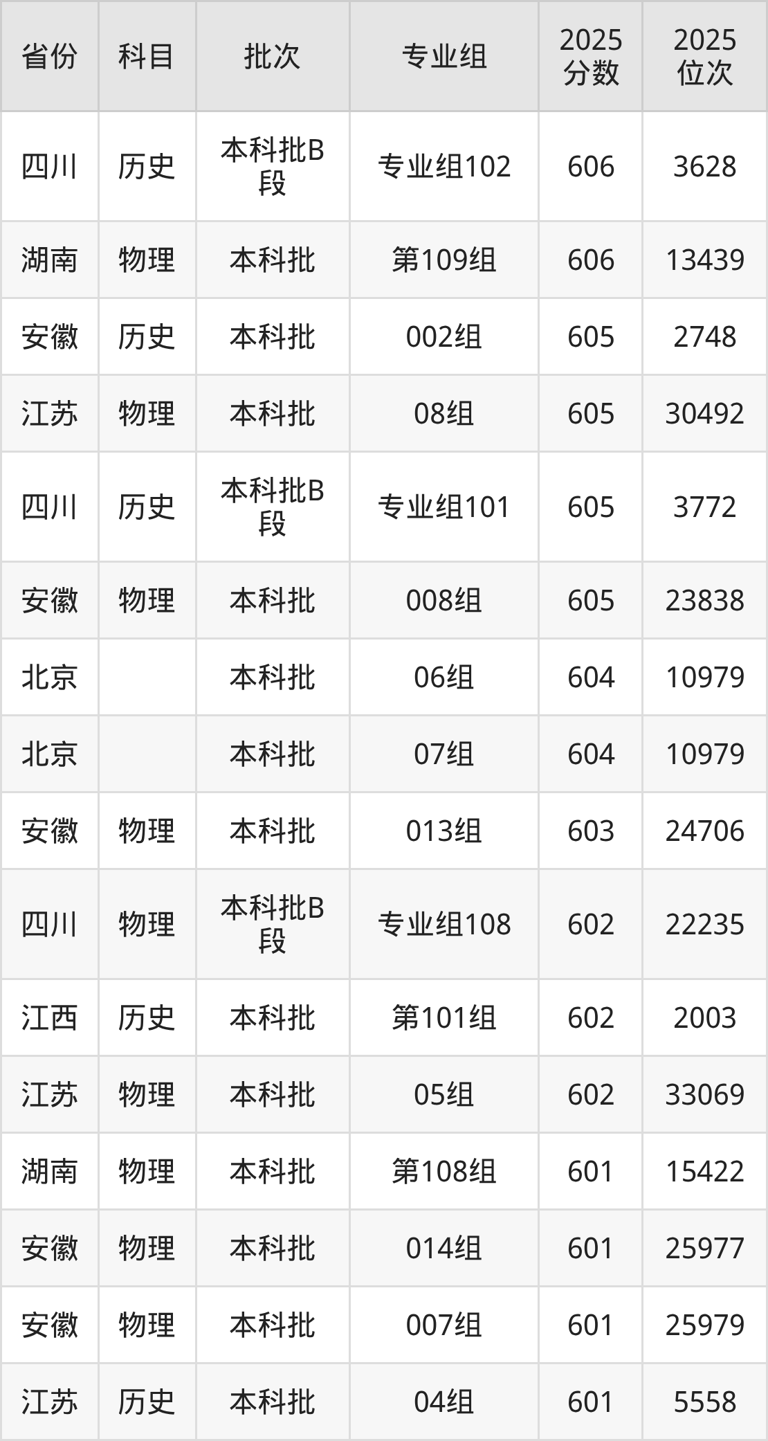 12、工商管理类:606分、位次20835名;