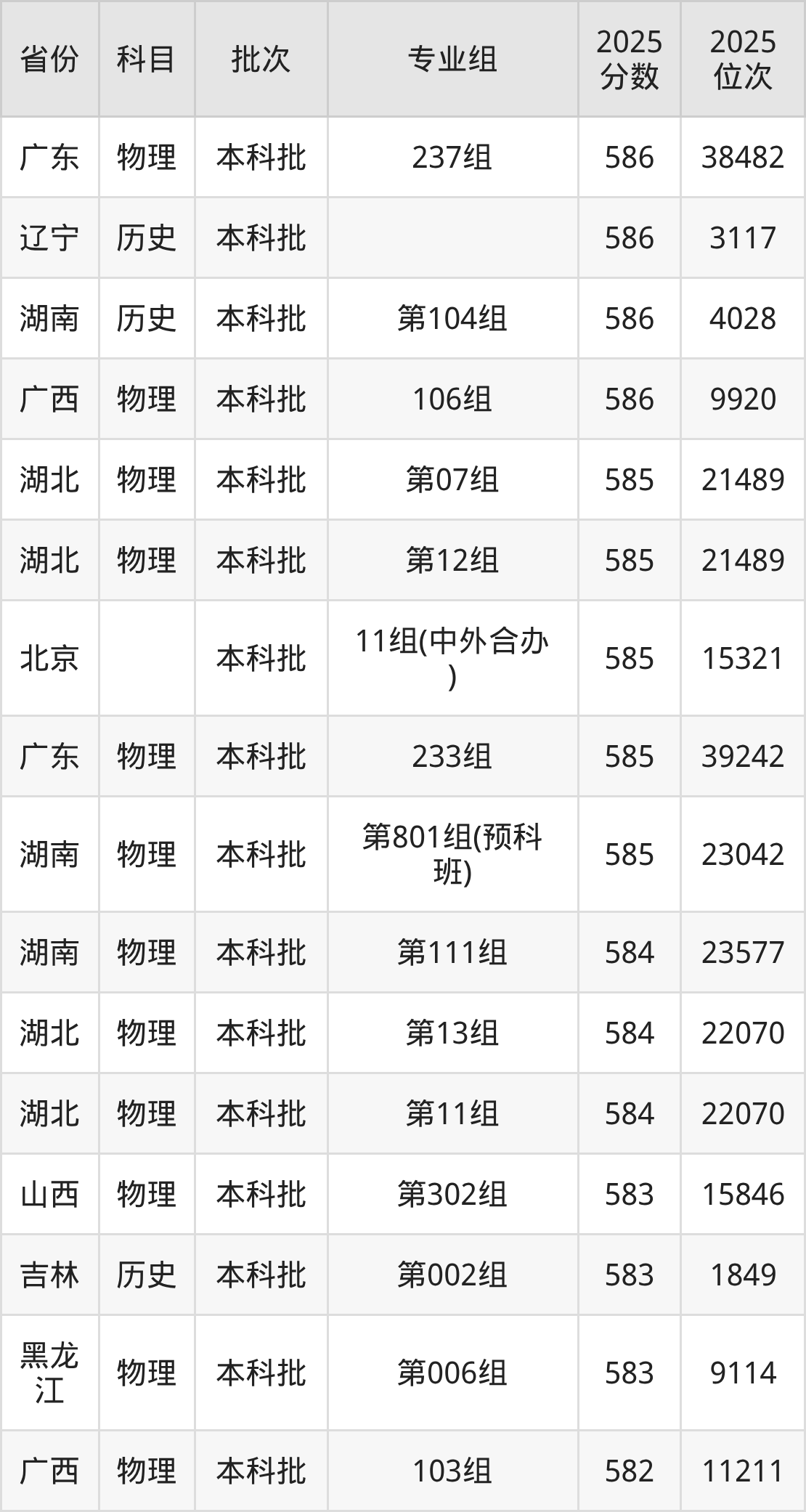 38、园林:587分、位次34886名;