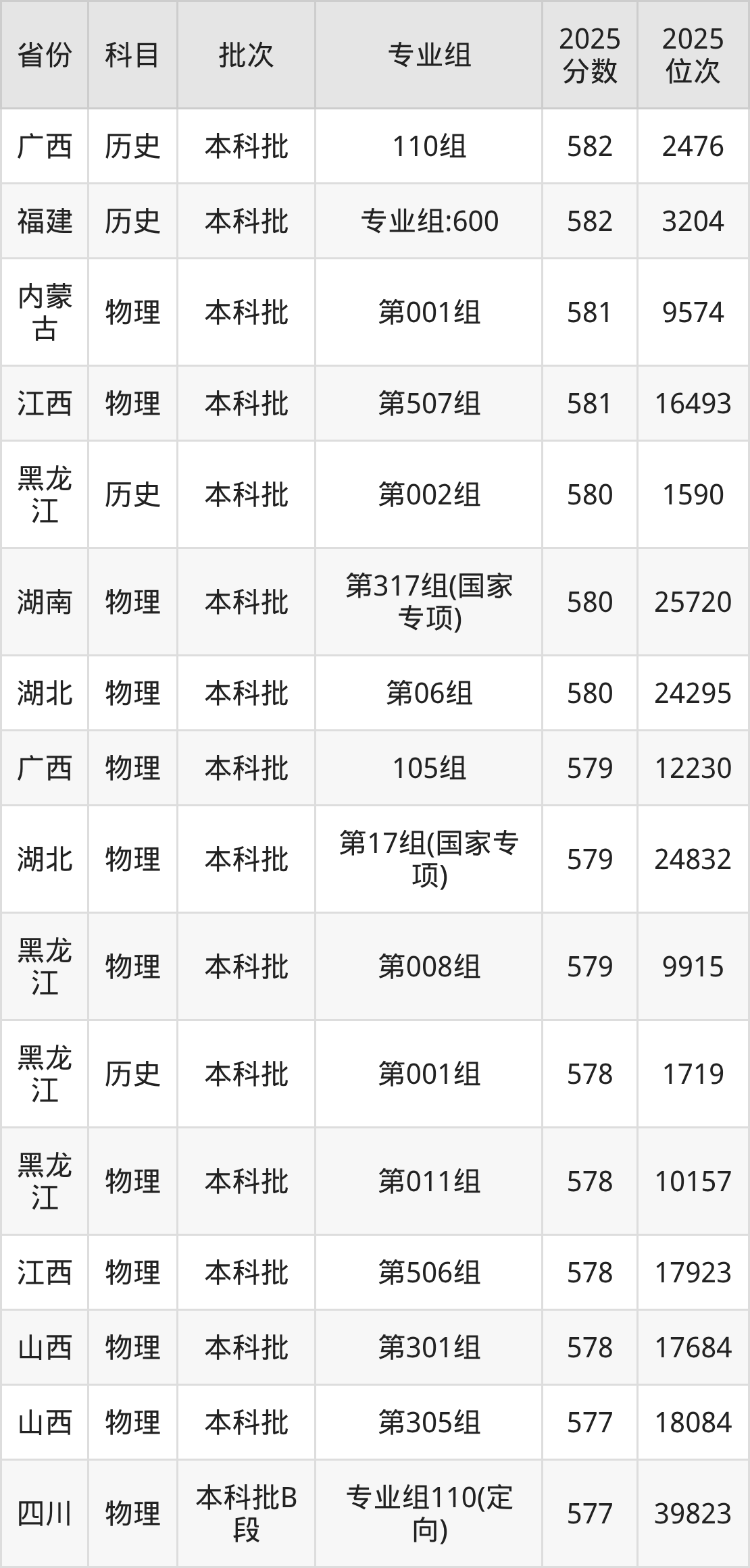 43、给排水科学与工程:583分、位次38580名;