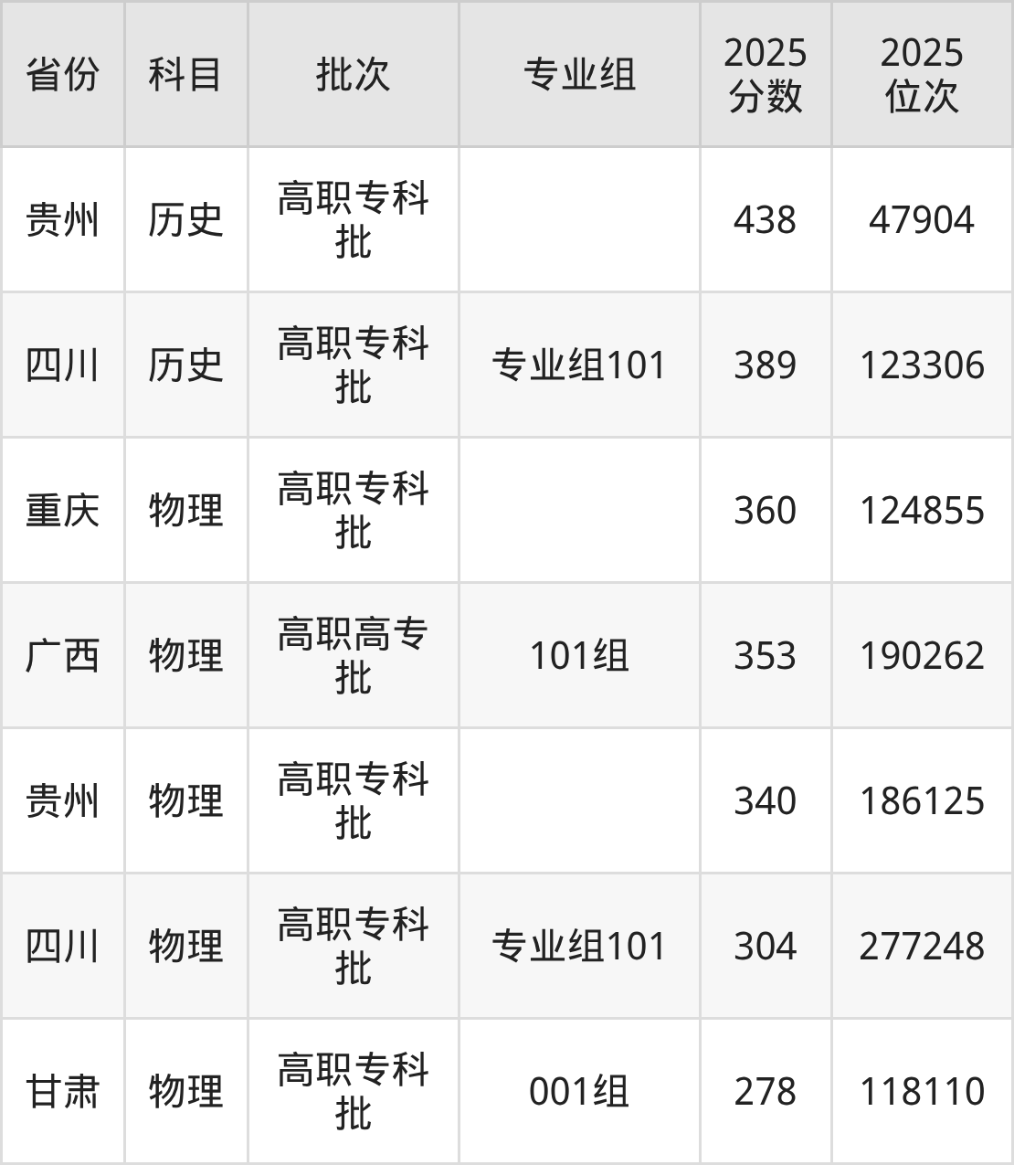 下面是2025年大理农林职业技术学院在全国各省录取最低分数据及位次,各位考生也可作为一个参考。