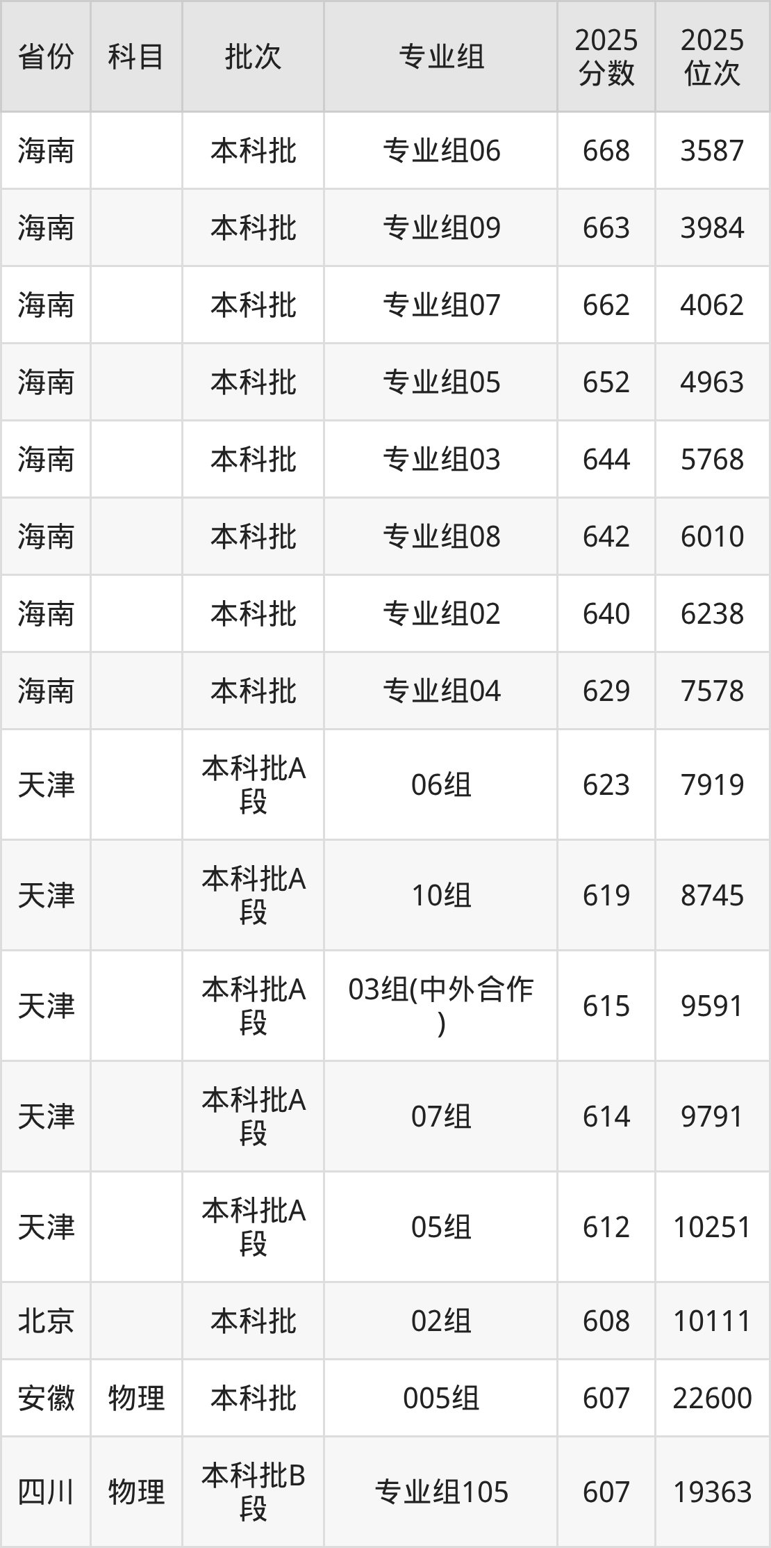 下面是2025年云南大学在全国各省录取最低分数据及位次,各位考生也可作为一个参考。