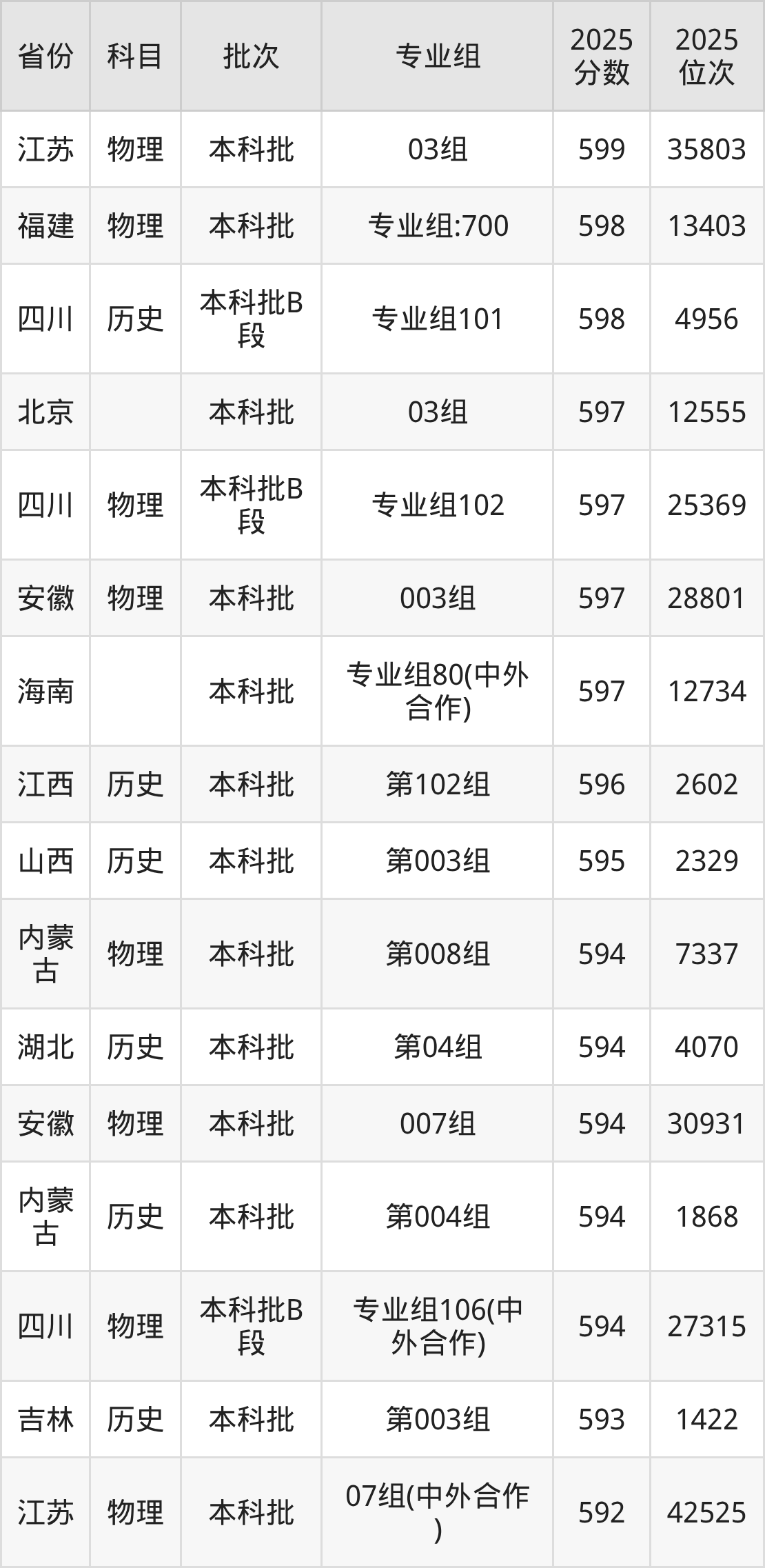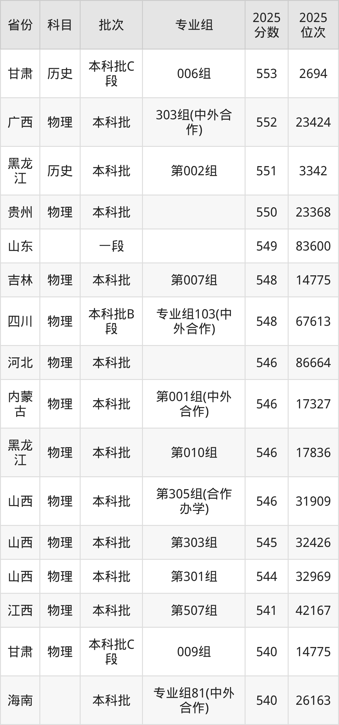参考2025年山东省高考招录数据,按照分数线从高到低依次为大家展示云南大学各个专业录取分数线。