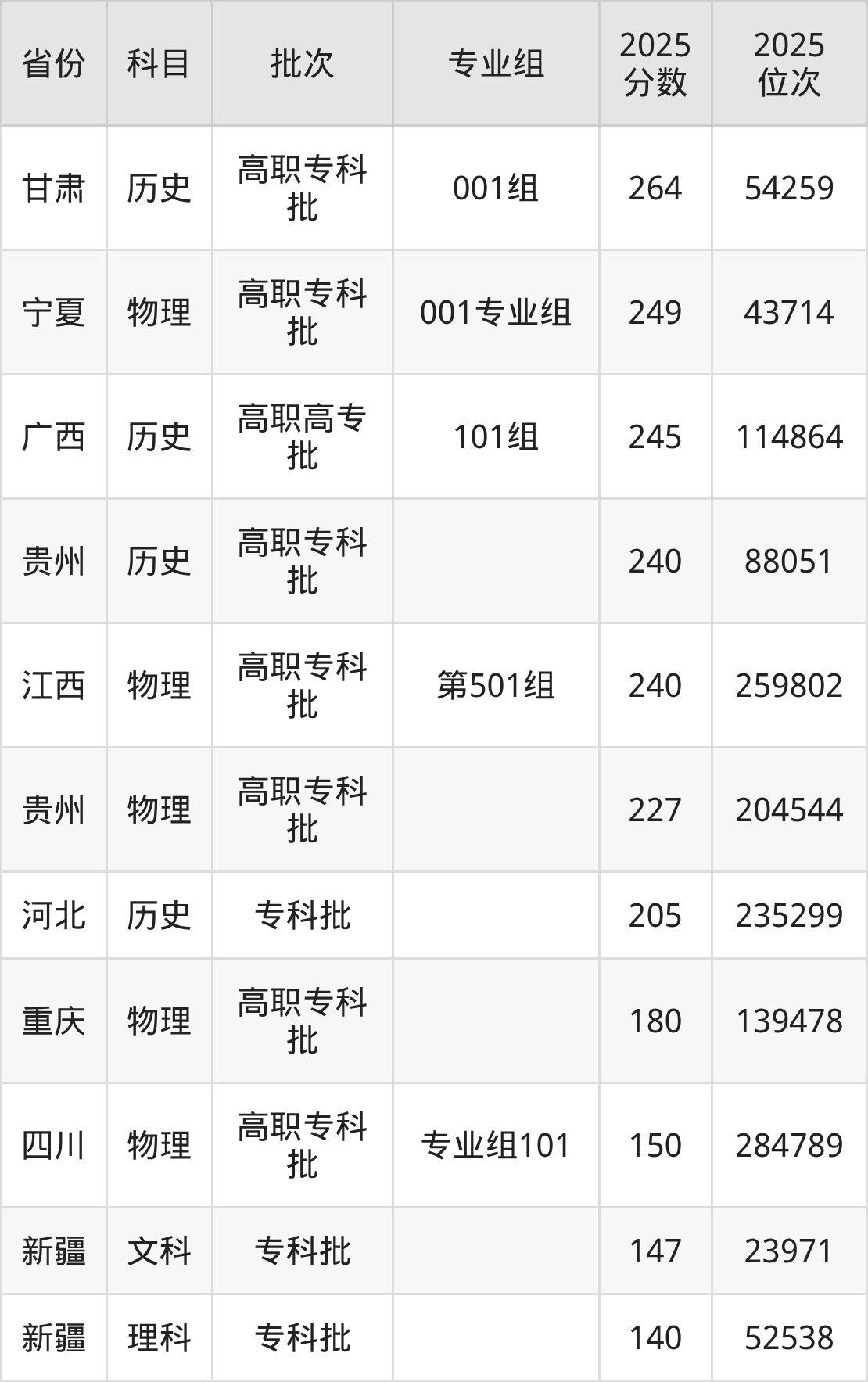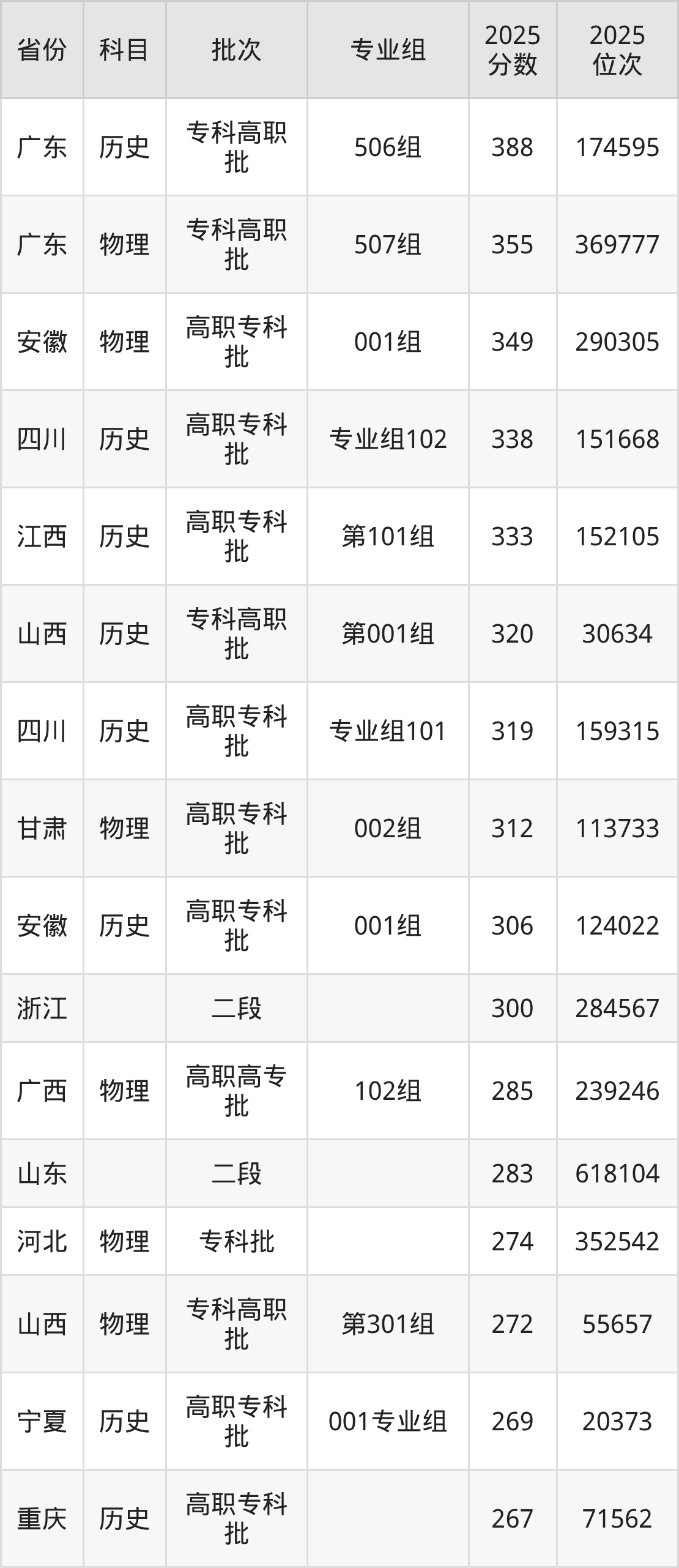下面是2025年重庆传媒职业学院在全国各省录取最低分数据及位次,各位考生也可作为一个参考。