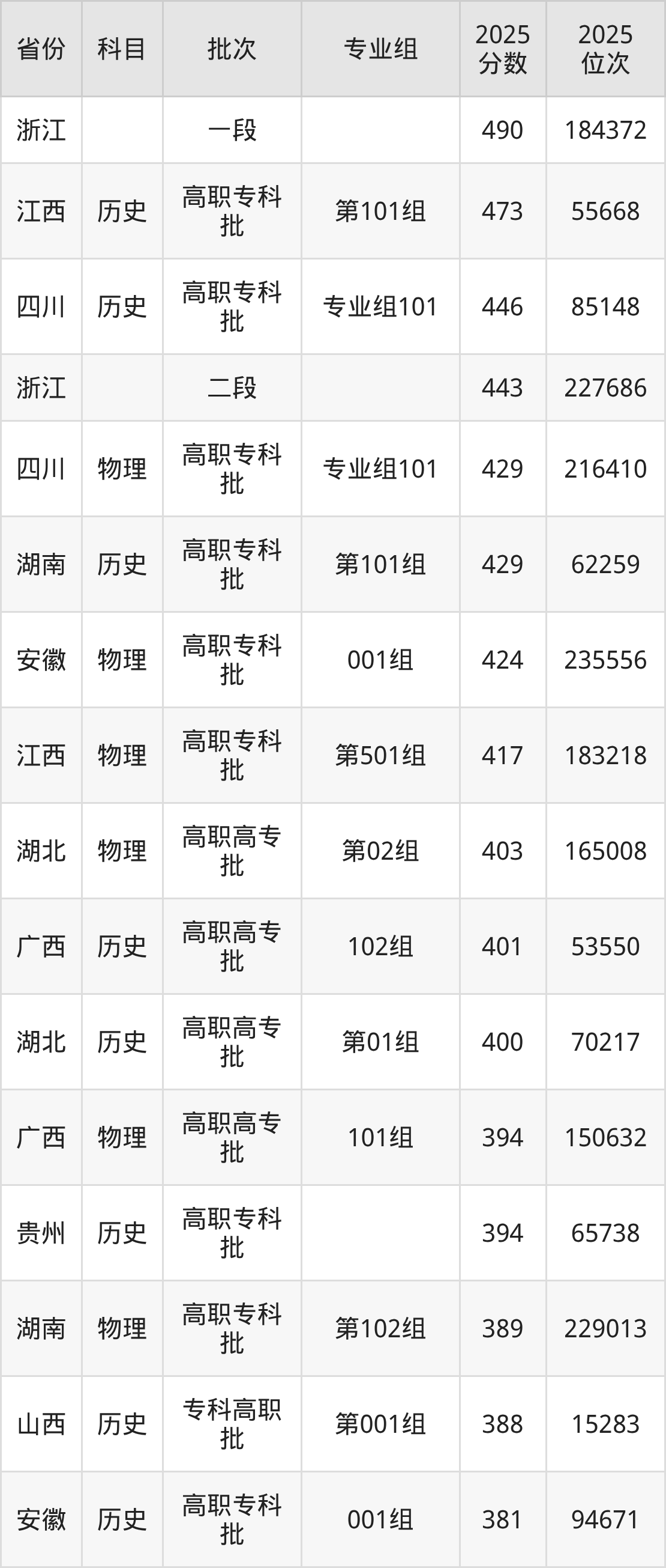 2025年福建信息职业技术学院全国录取分数线146分到490分,录取最高在浙江、录取最低在新疆(文科)。