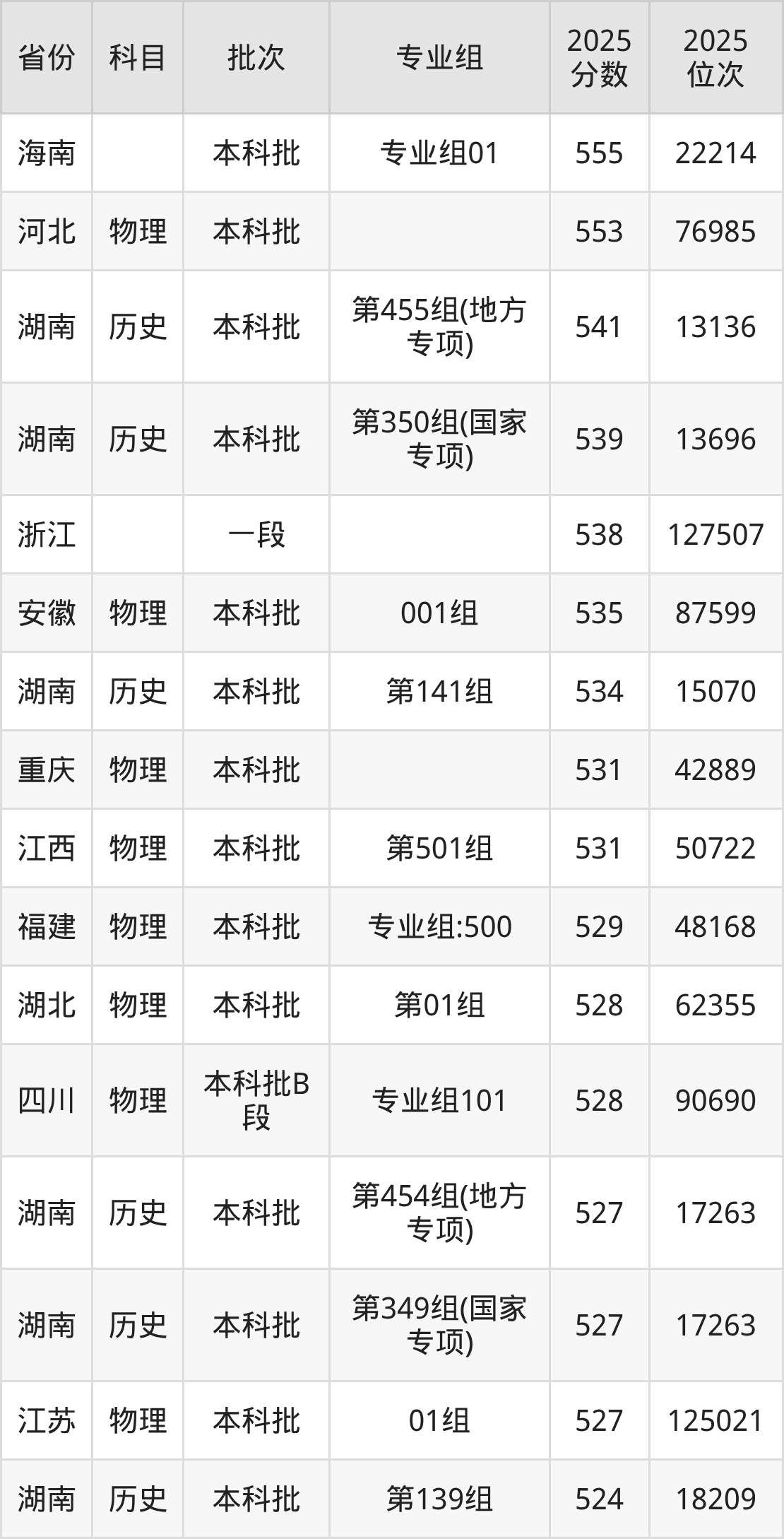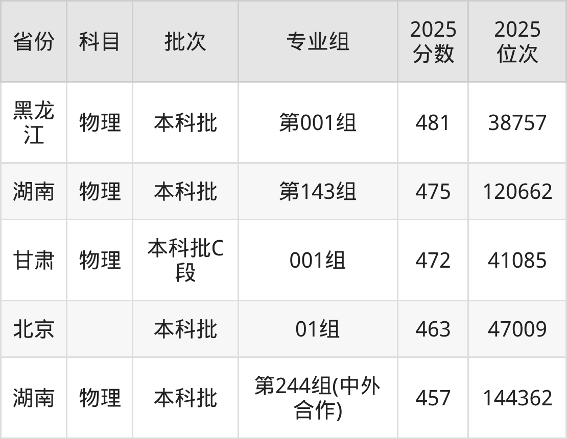 2025年湖南第一师范学院全国录取分数线457分到555分,录取最高在海南(专业组01)、录取最低在湖南(第244组(中外合作))。