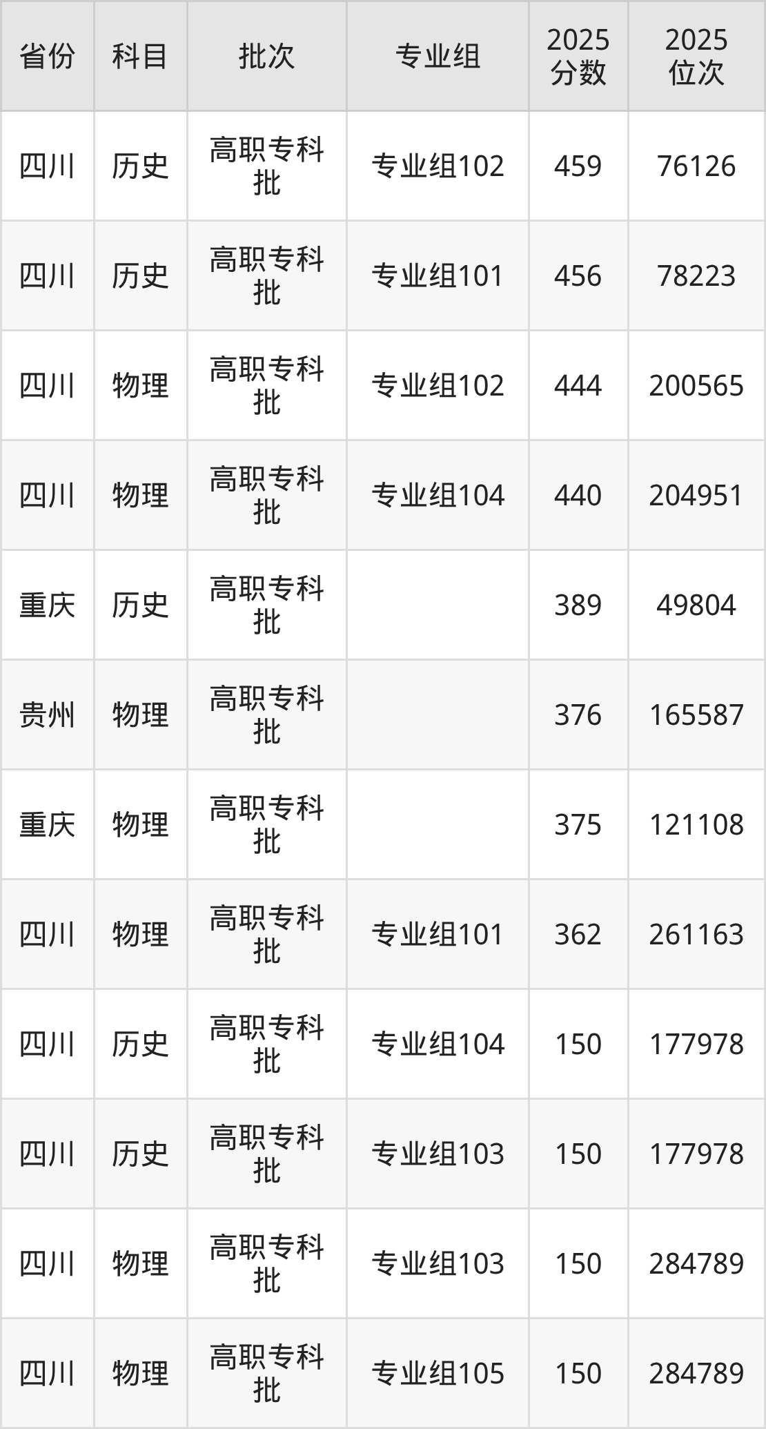 2025年乐山职业技术学院全国录取分数线150分到459分,录取最高在四川(专业组102)、录取最低在四川(专业组105)。