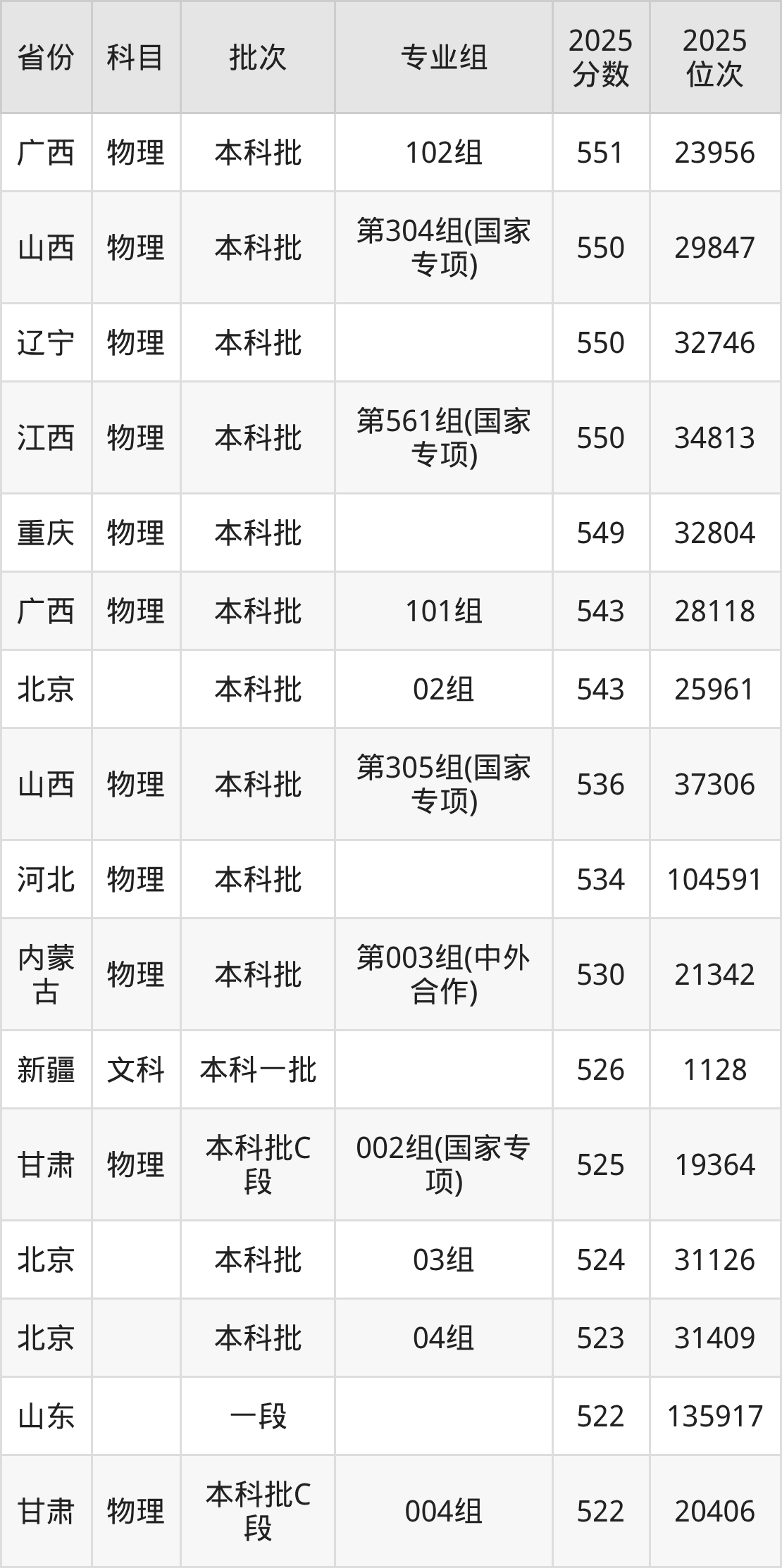 参考2025年山东省高考招录数据,按照分数线从高到低依次为大家展示北京工商大学各个专业录取分数线。