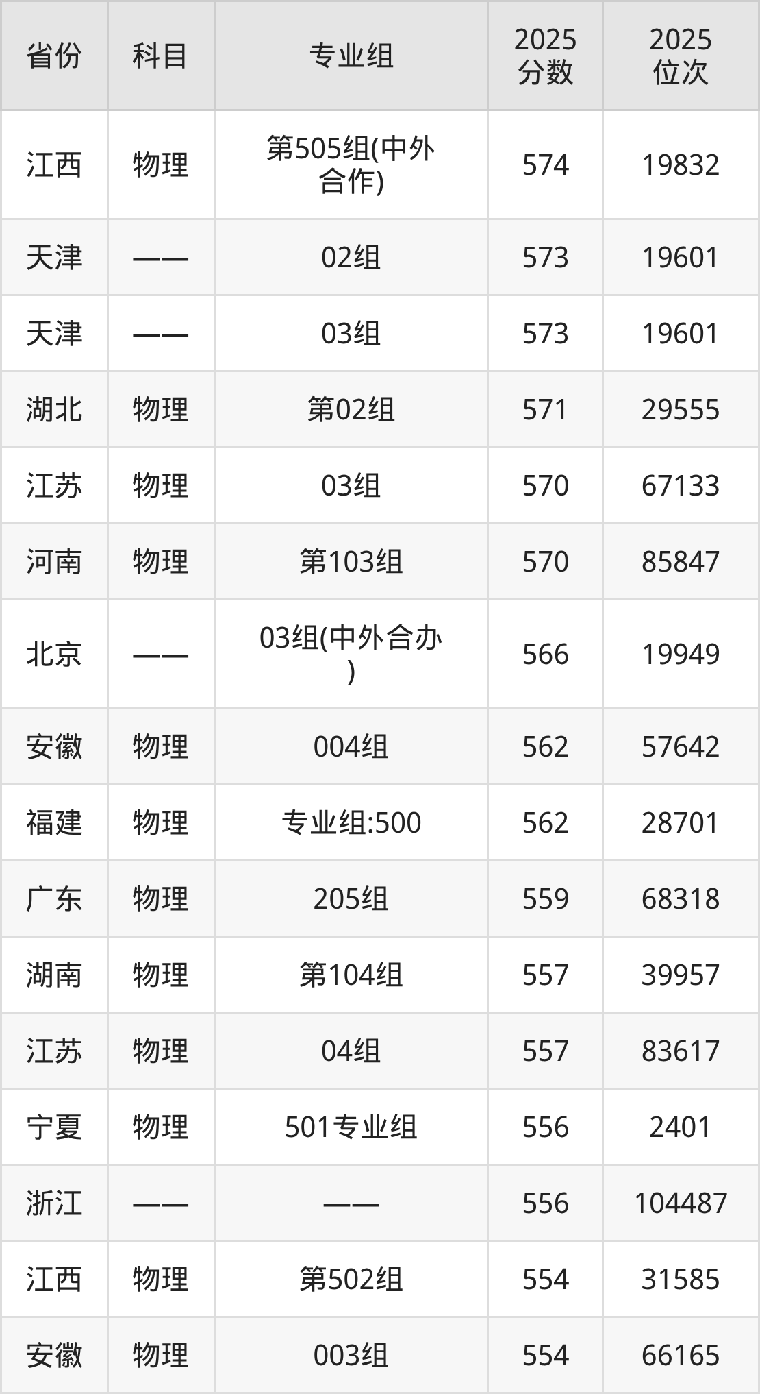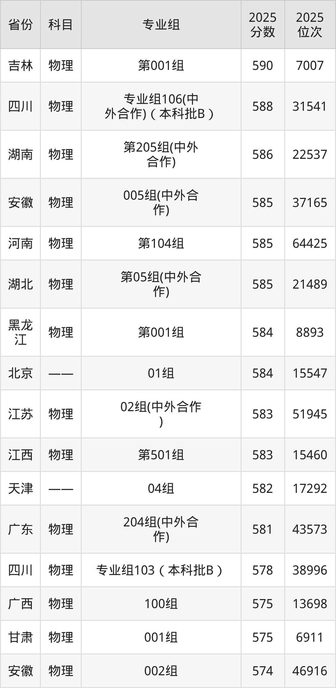 | 临床医学 | 物理+化学 | (中外合作办 学)(与英国 莱斯特大学合 作) |