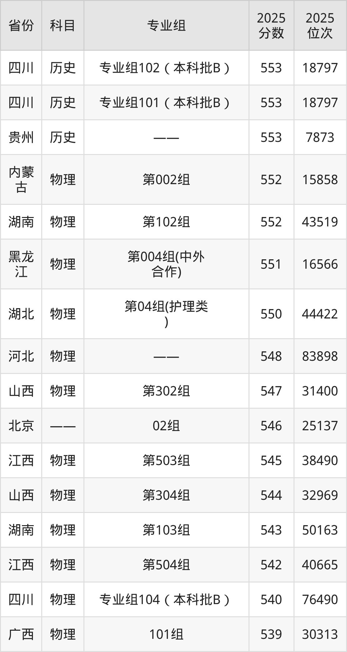 下面是2025年重庆医科大学在全国各省录取最低分数据及位次,各位考生也可作为一个参考。