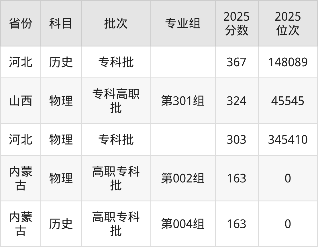 参考2025年河北省高考招录数据,按照分数线从高到低依次为大家展示鄂尔多斯生态环境职业学院各个专业录取分数线。