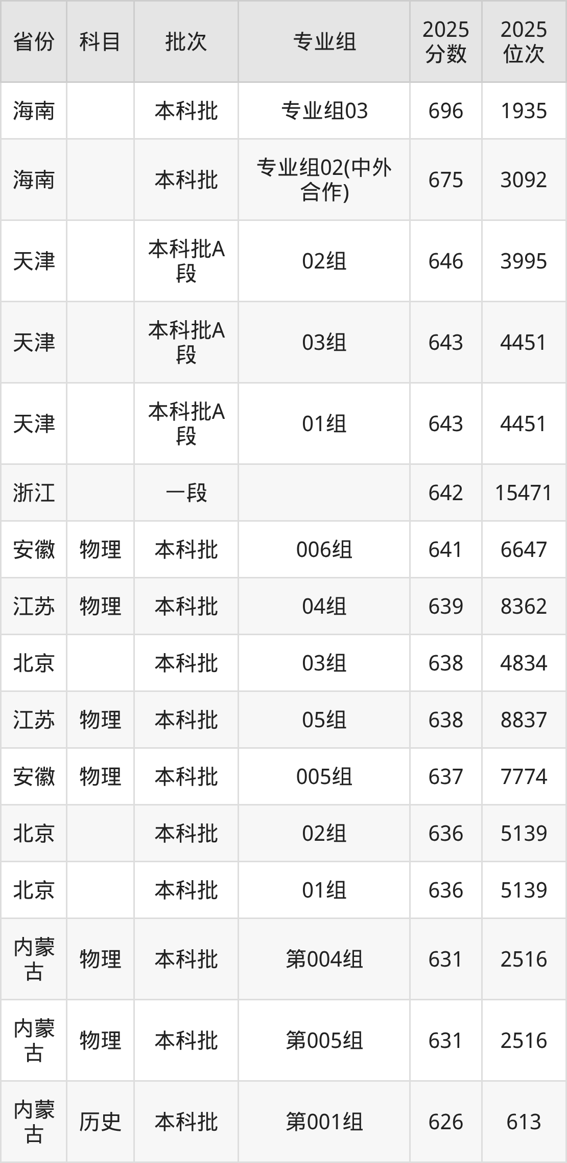下面是2025年中国农业大学在全国各省录取最低分数据及位次,各位考生也可作为一个参考。