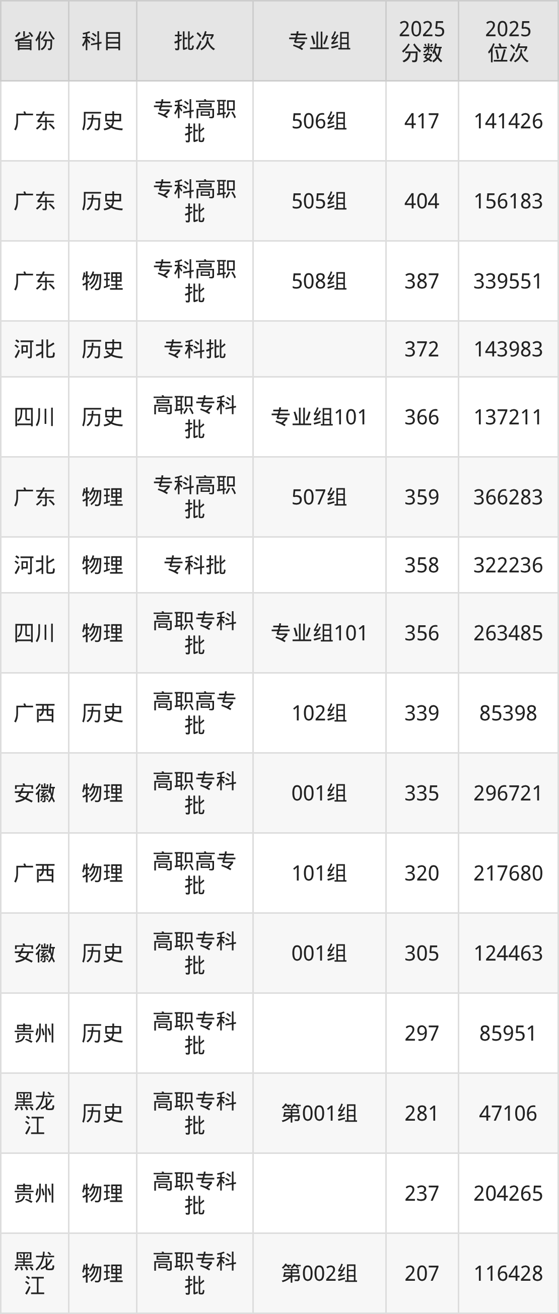 一、广西安全工程职业技术学院2025年专业录取分数线