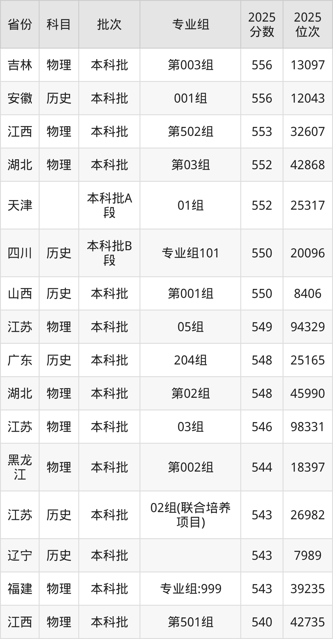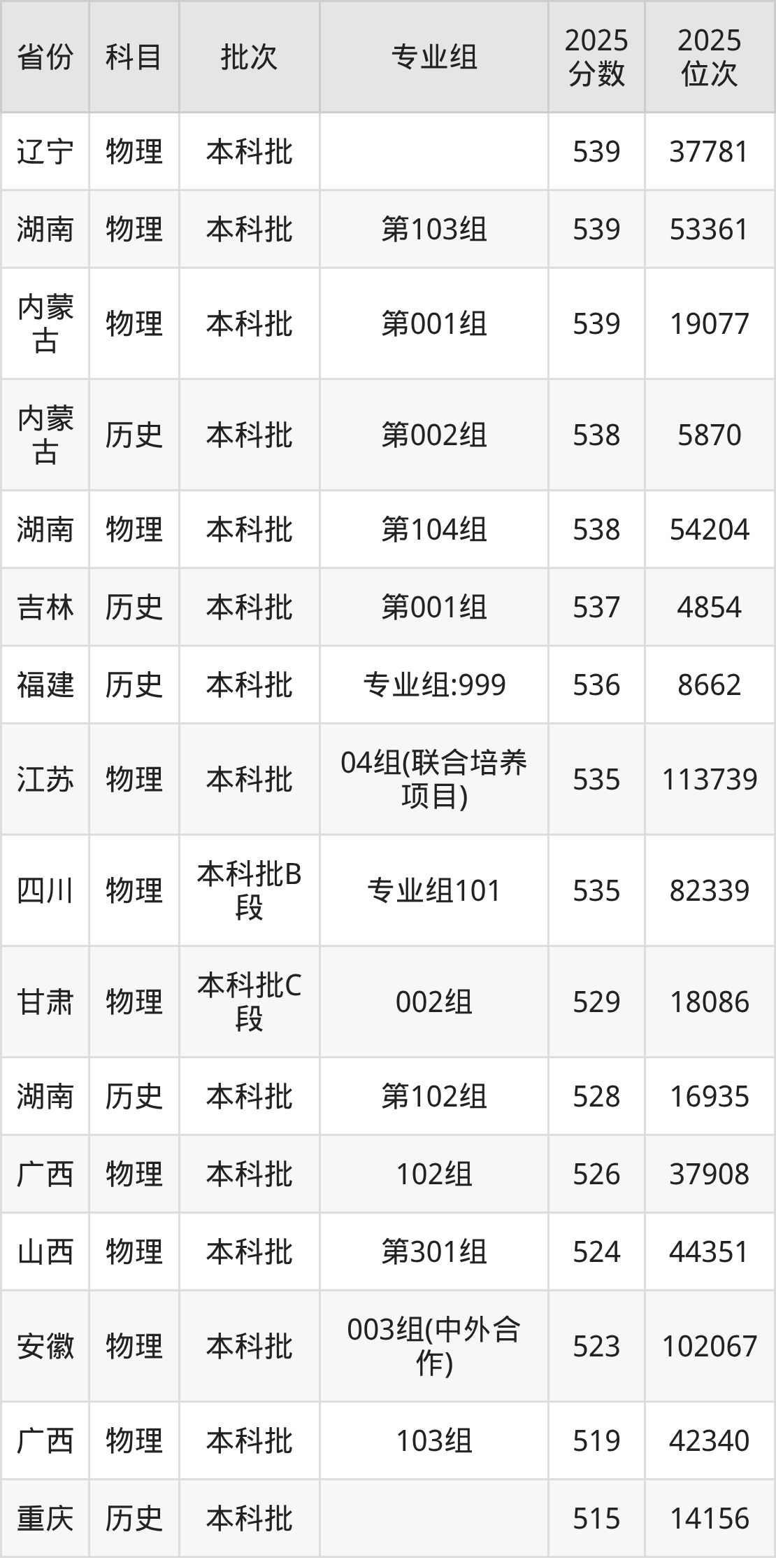 参考2025年山东省高考招录数据,按照分数线从高到低依次为大家展示南京工程学院各个专业录取分数线。