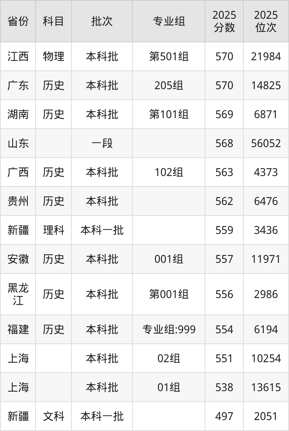 下面是2025年中国美术学院在全国各省录取最低分数据及位次,各位考生也可作为一个参考。