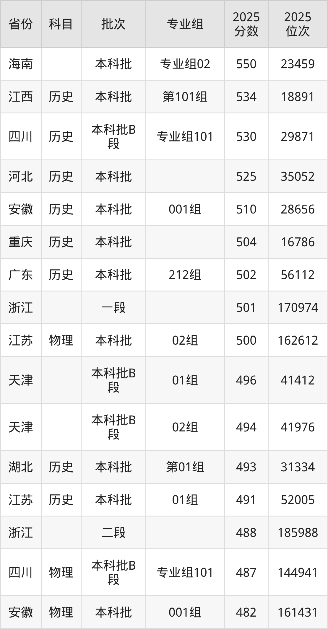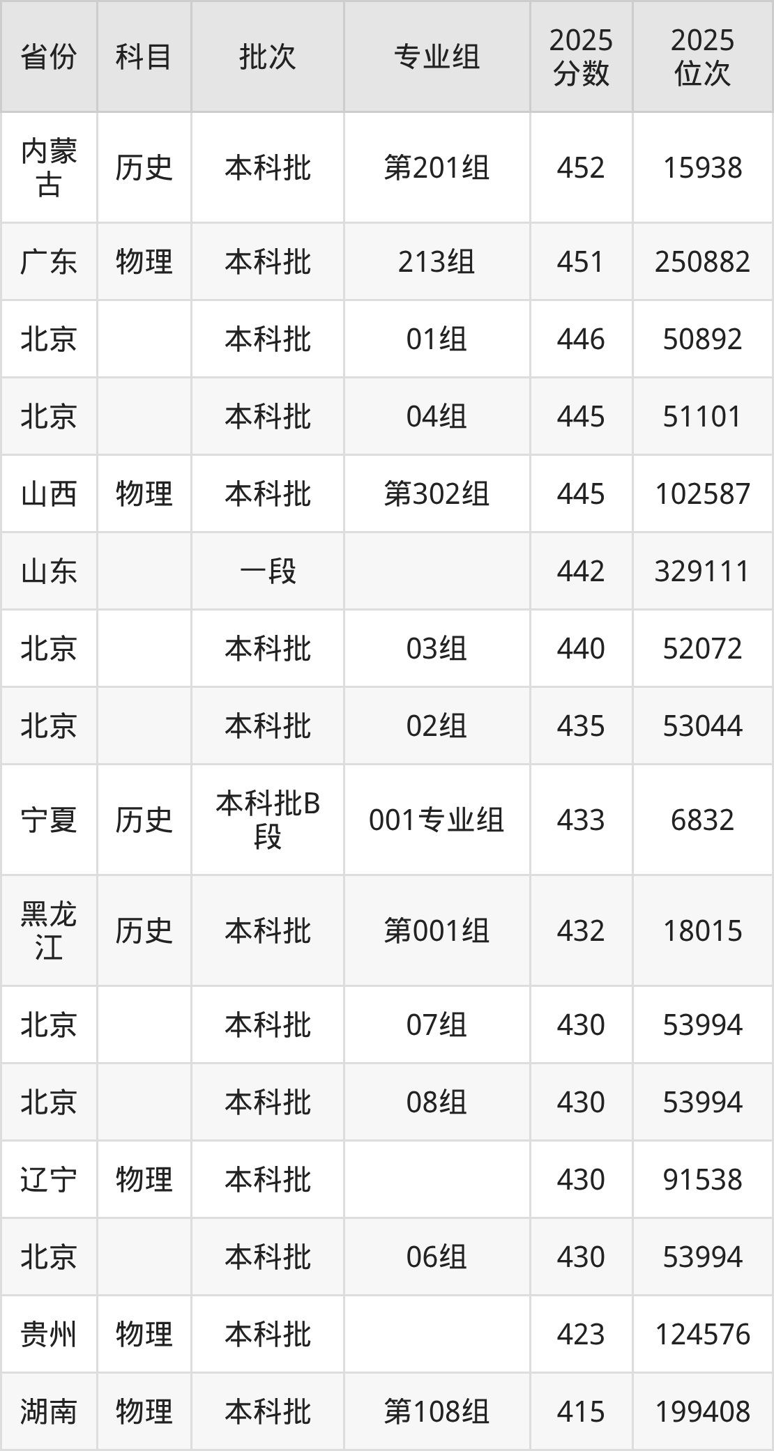 下面是2025年北京城市学院在全国各省录取最低分数据及位次,各位考生也可作为一个参考。