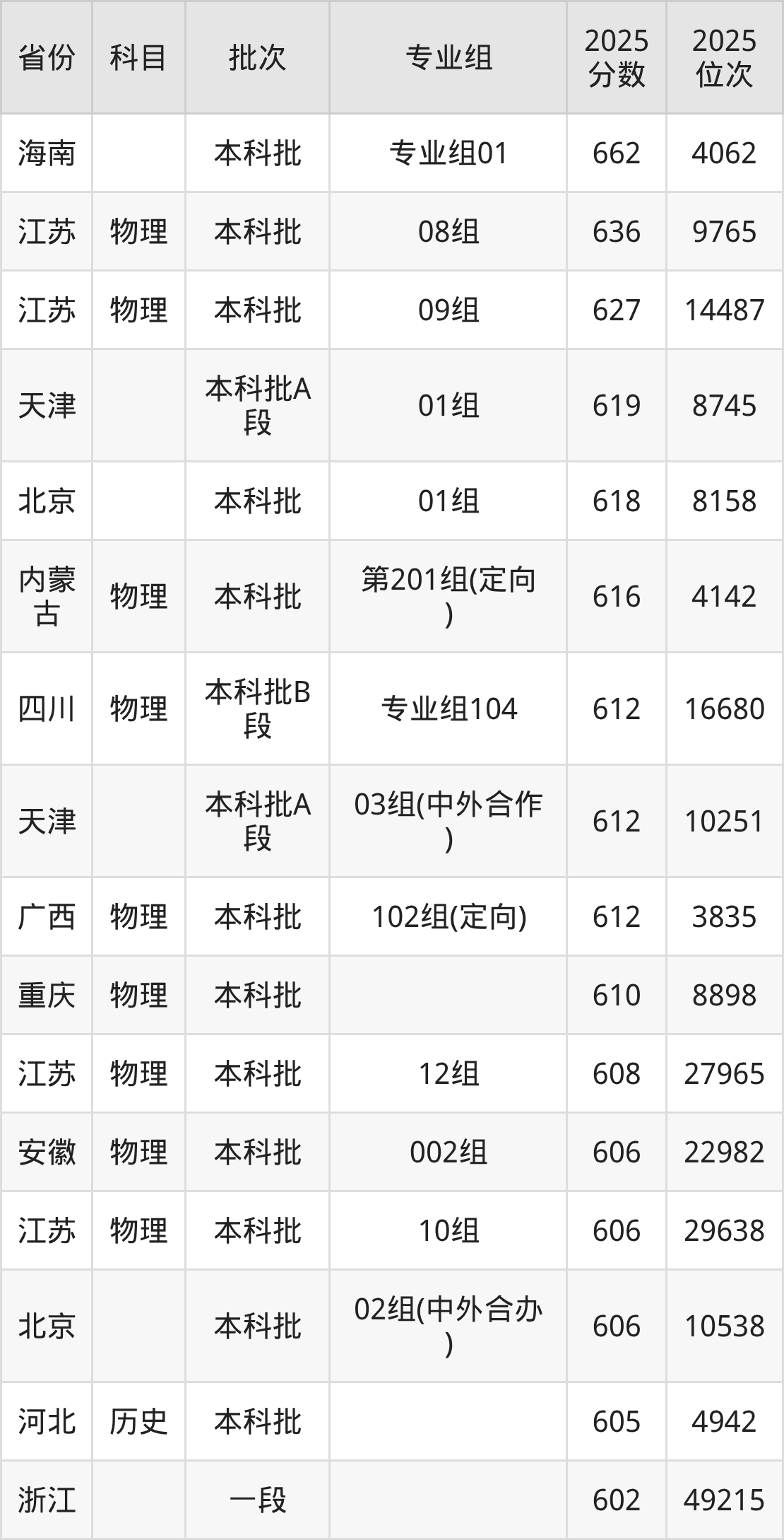 2025年南京信息工程大学全国录取分数线487分到662分,录取最高在海南(专业组01)、录取最低在新疆(文科)。
