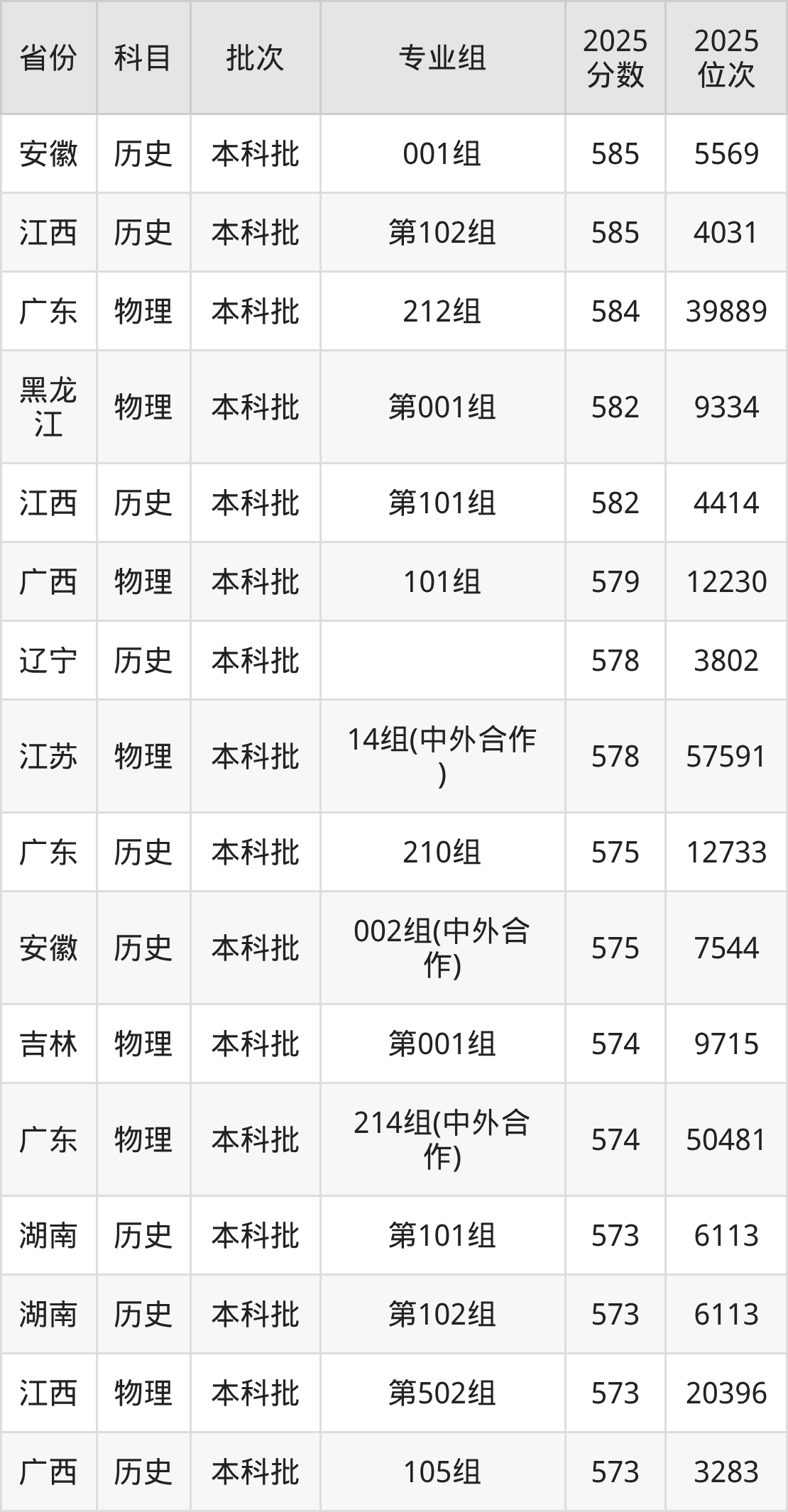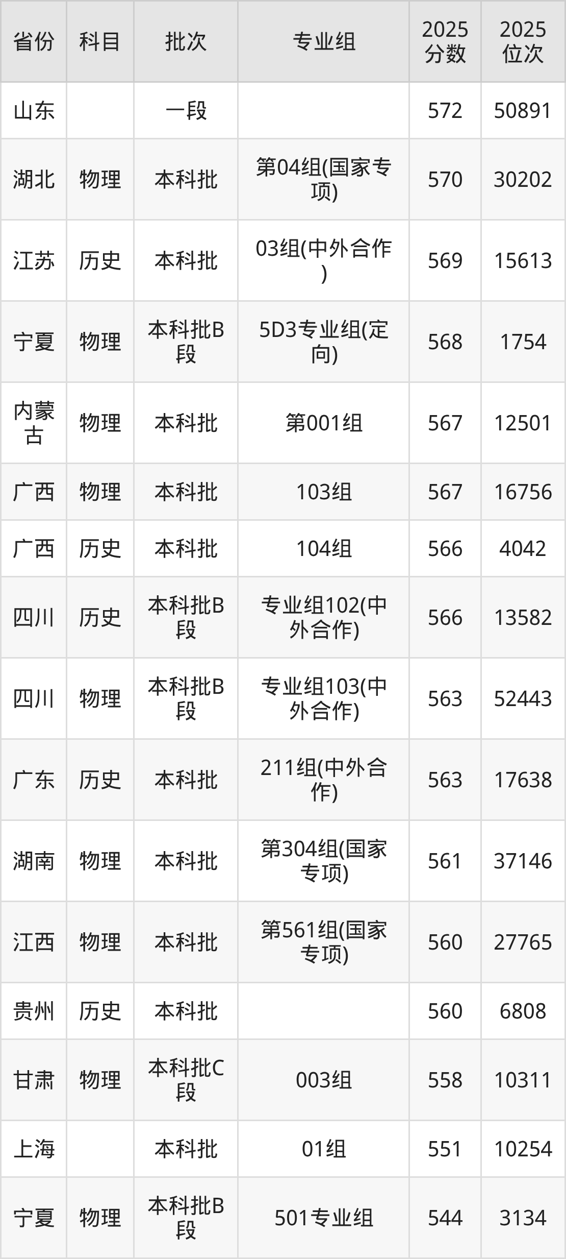 参考2025年山东省高考招录数据,按照分数线从高到低依次为大家展示南京信息工程大学各个专业录取分数线。