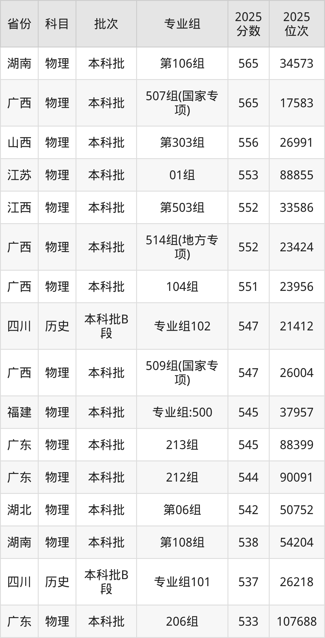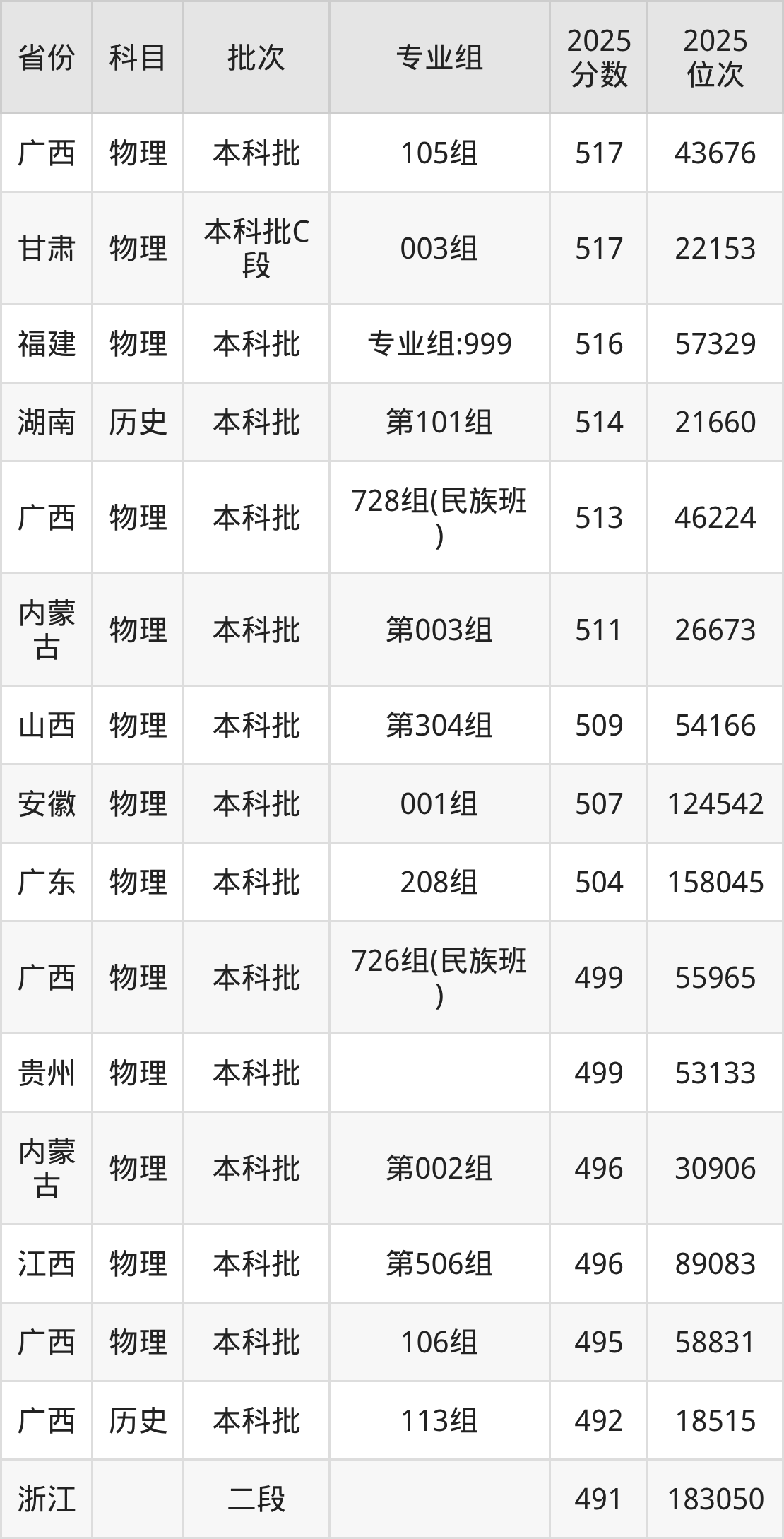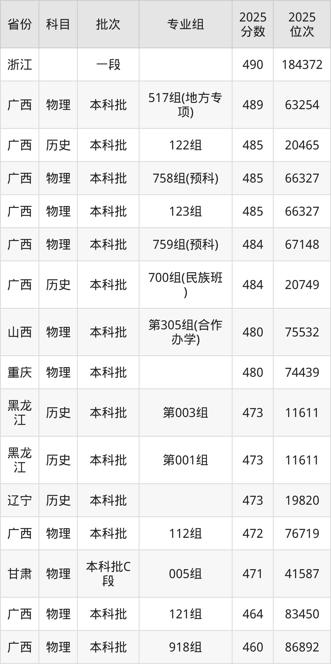 下面是2025年广西医科大学在全国各省录取最低分数据及位次,各位考生也可作为一个参考。