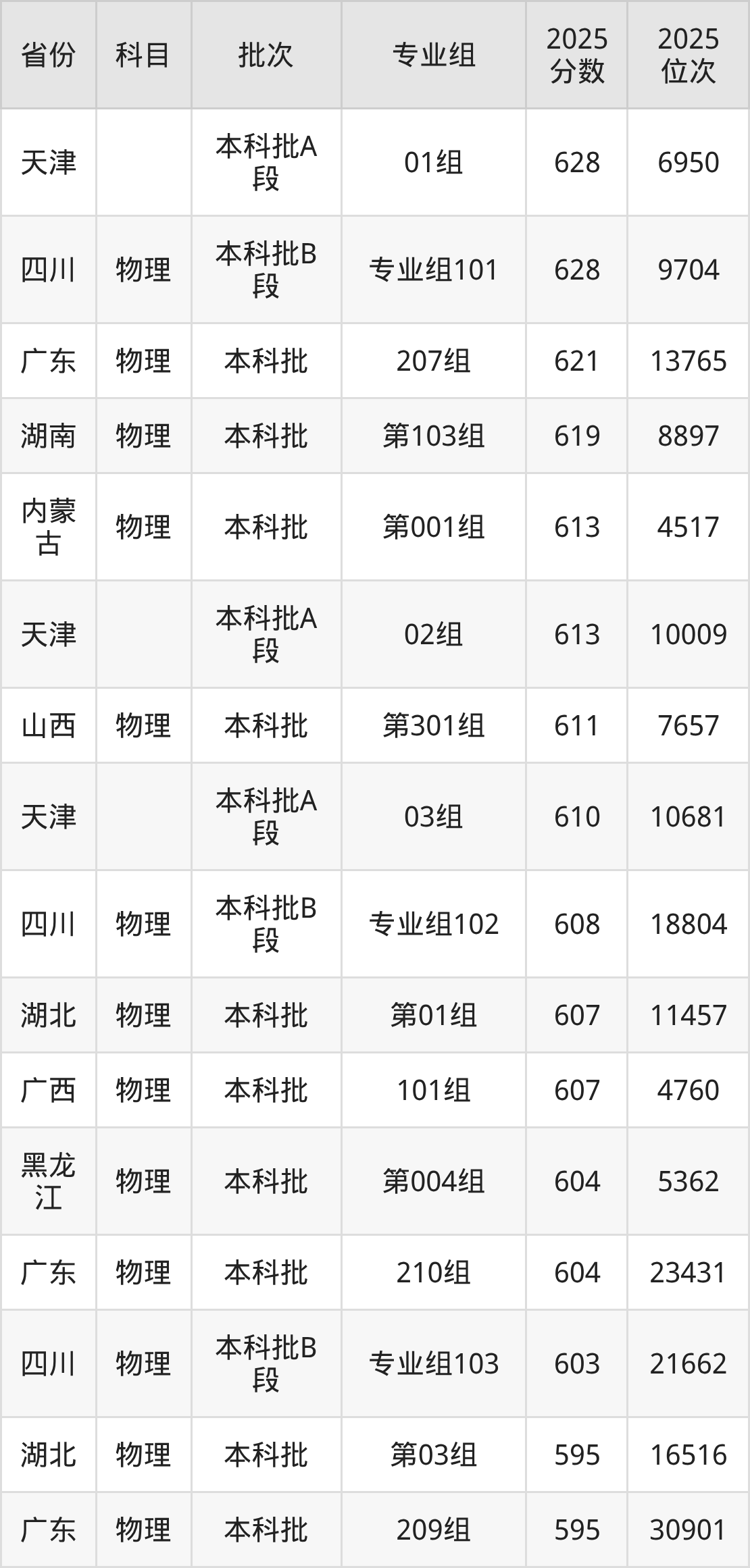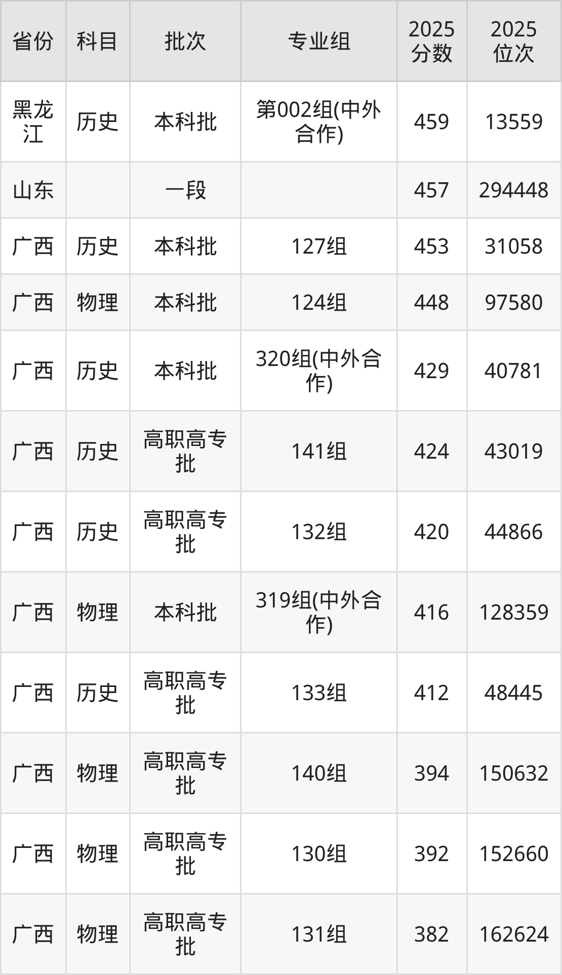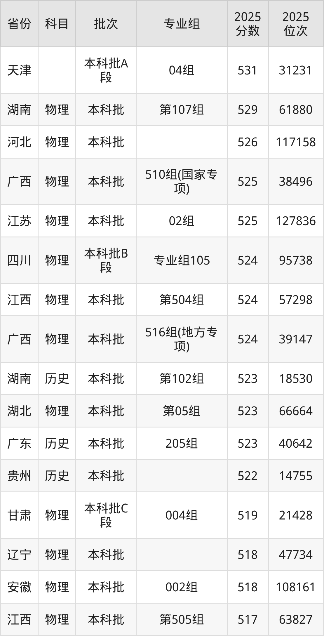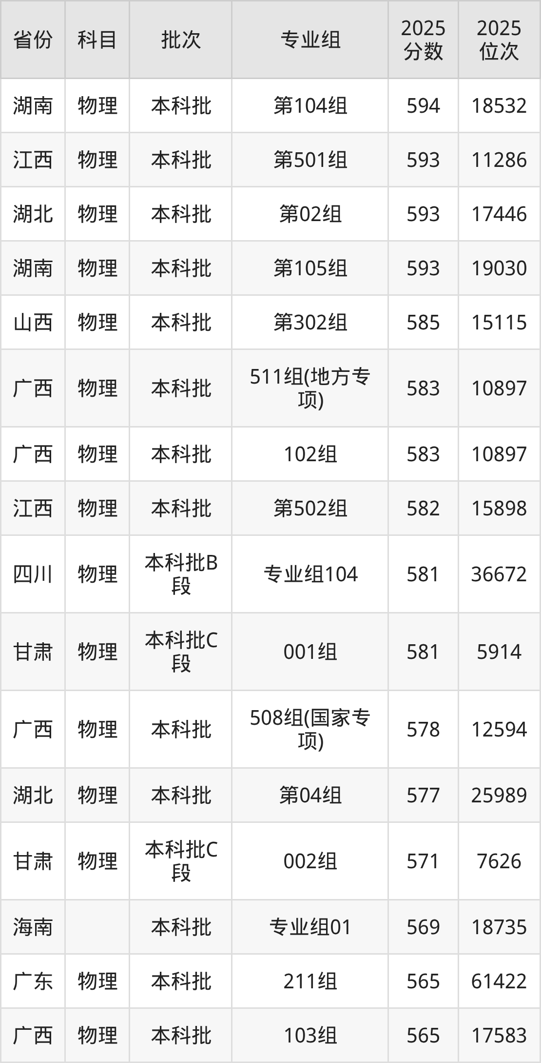 下面是2025年广西医科大学在全国各省录取最低分数据及位次,各位考生也可作为一个参考。