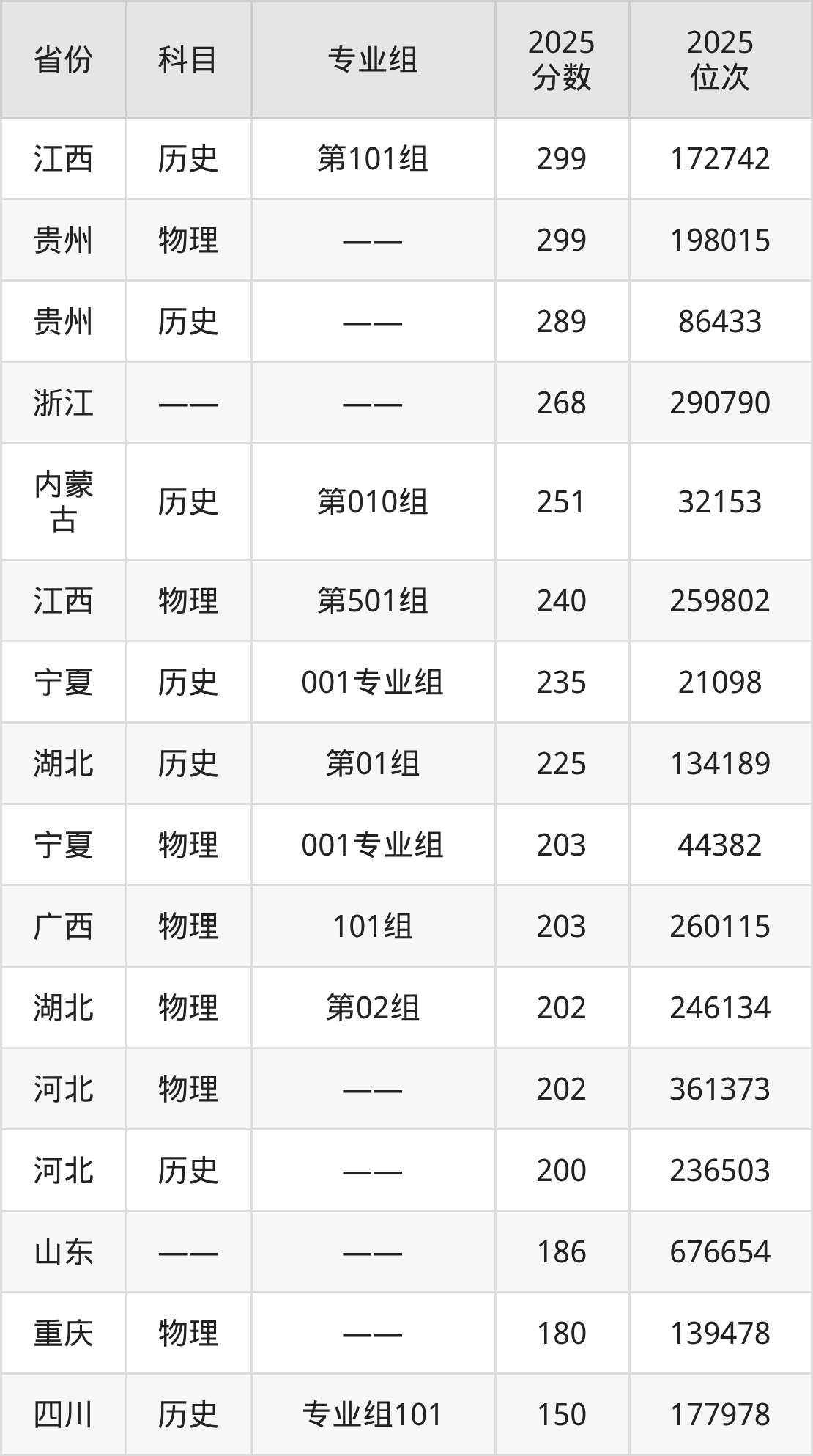 2025年自贡职业技术学院全国录取分数线150分到299分,录取最高在江西(历史类第101组)、录取最低在四川(物理类专业组101)。