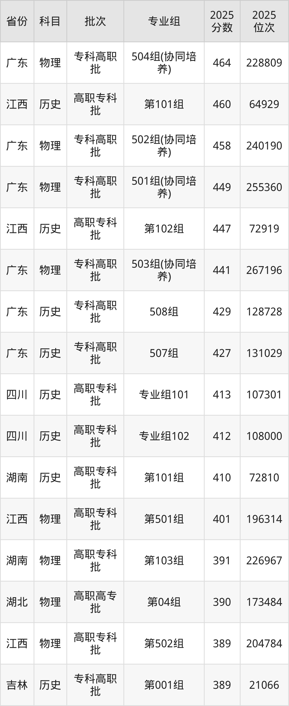 一、广东环境保护工程职业学院2025年专业录取分数线