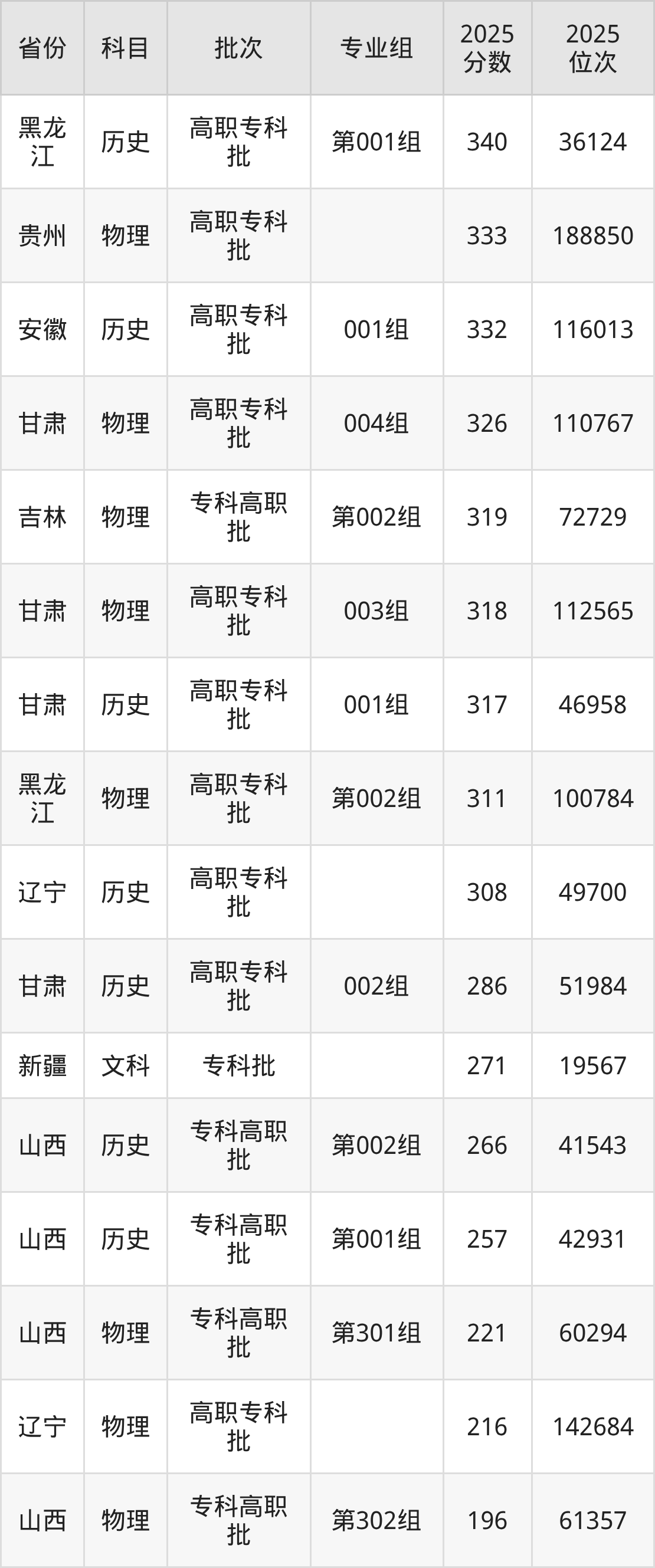 下面是2025年广东环境保护工程职业学院在全国各省录取最低分数据及位次,各位考生也可作为一个参考。