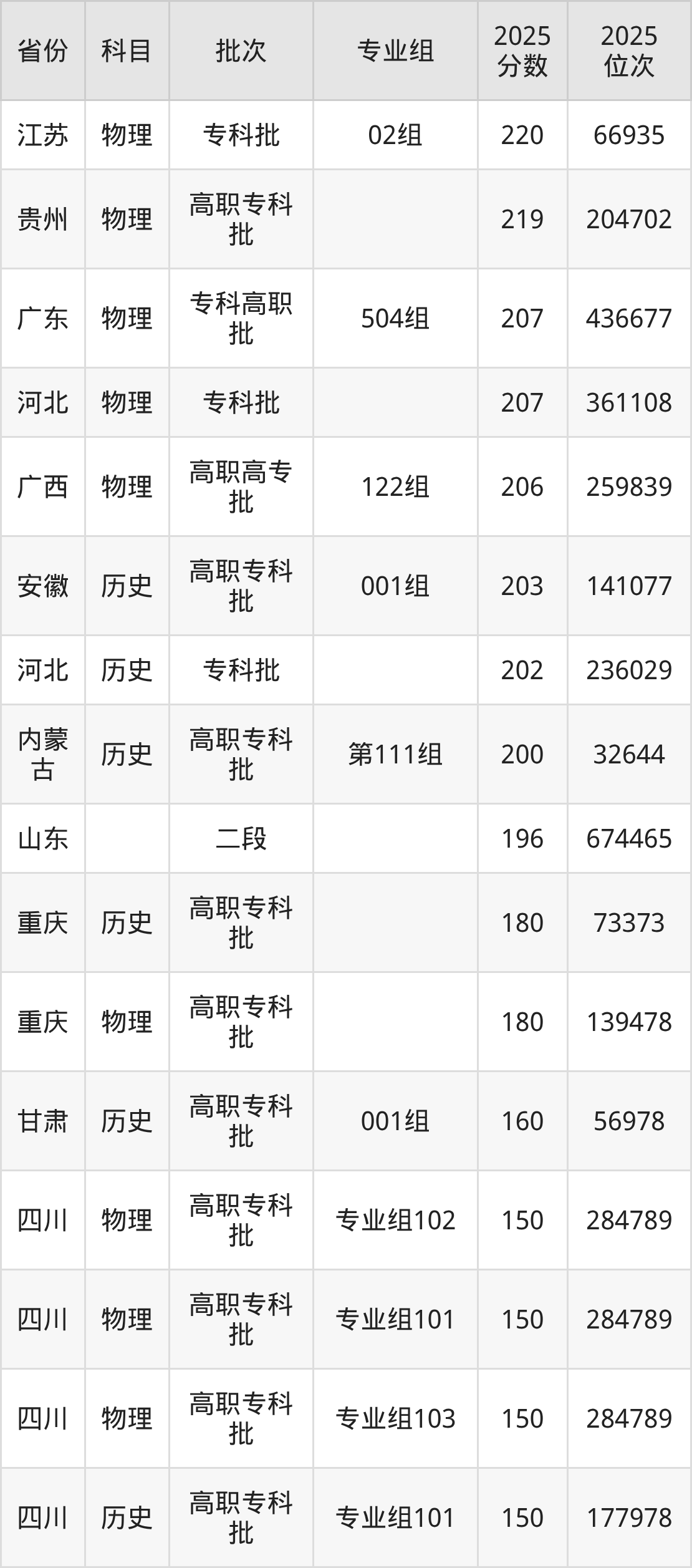 下面是2025年巴中职业技术学院在全国各省录取最低分数据及位次,各位考生也可作为一个参考。