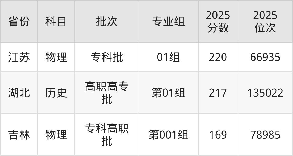 参考2025年吉林省高考招录数据,按照分数线从高到低依次为大家展示遵义职业技术学院各个专业录取分数线。