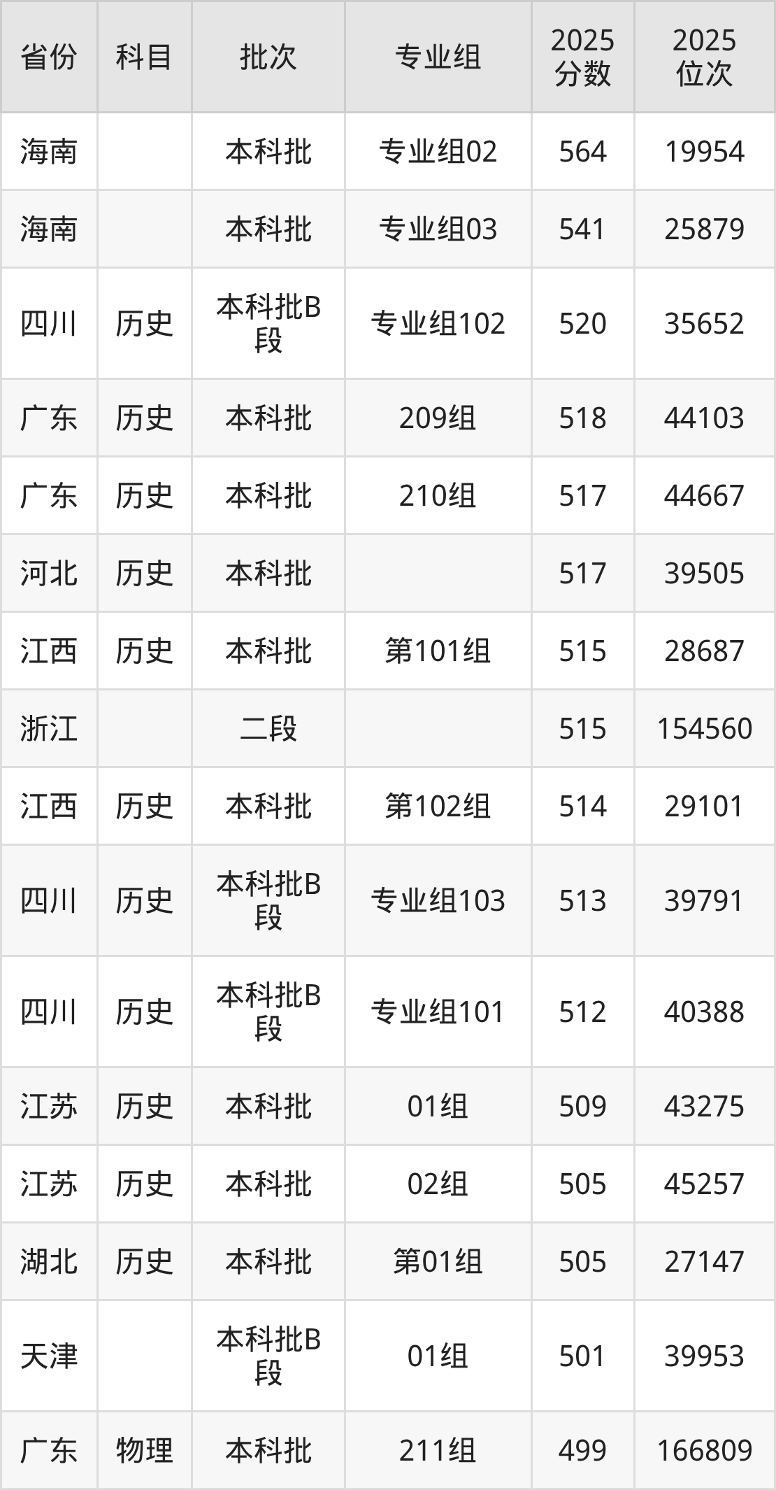 2025年厦门大学嘉庚学院全国录取分数线339分到564分,录取最高在海南(专业组02)、录取最低在新疆(理科)。