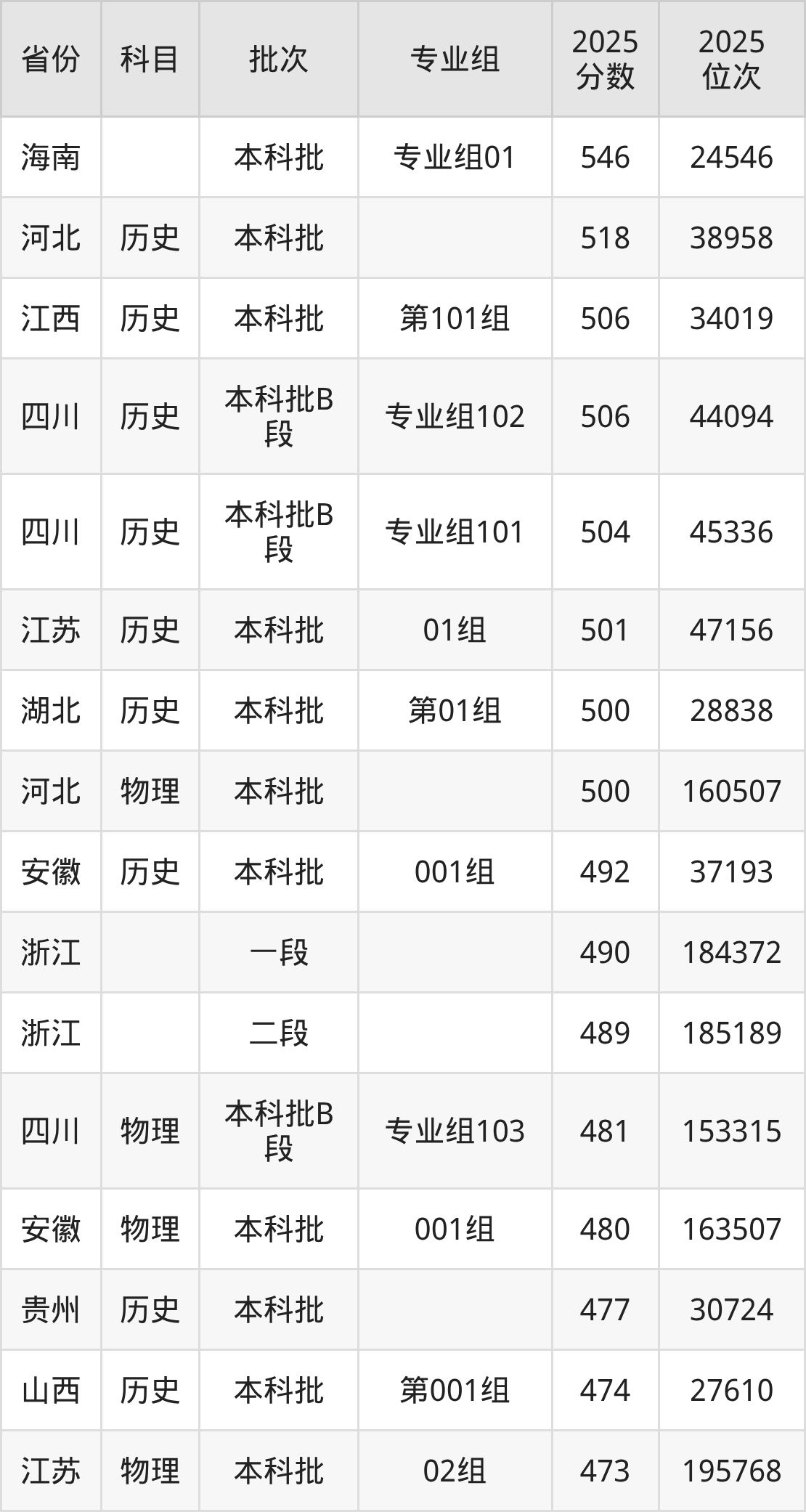 下面是2025年重庆工商大学派斯学院在全国各省录取最低分数据及位次,各位考生也可作为一个参考。