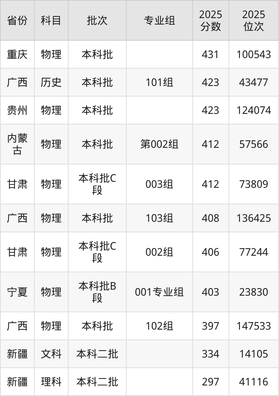 参考2025年内蒙古自治区高考招录数据,按照分数线从高到低依次为大家展示重庆工商大学派斯学院各个专业录取分数线。