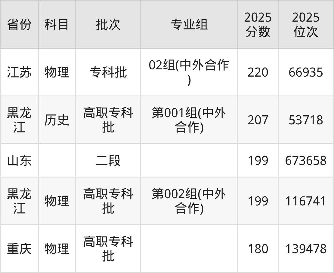 下面是2025年福州墨尔本理工职业学院在全国各省录取最低分数据及位次,各位考生也可作为一个参考。