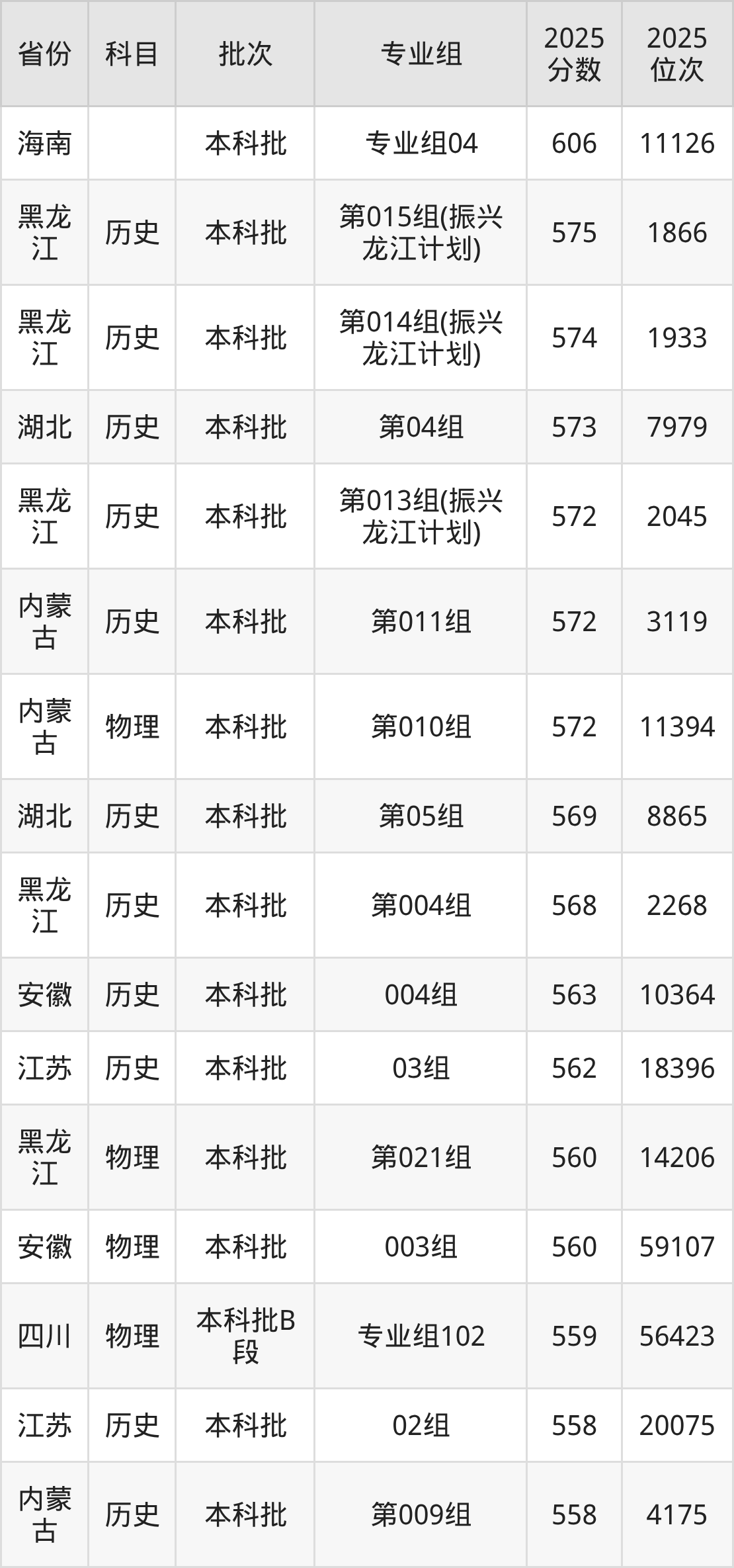 2025年黑龙江大学全国录取分数线346分到606分,录取最高在海南(专业组04)、录取最低在吉林(第010组)。