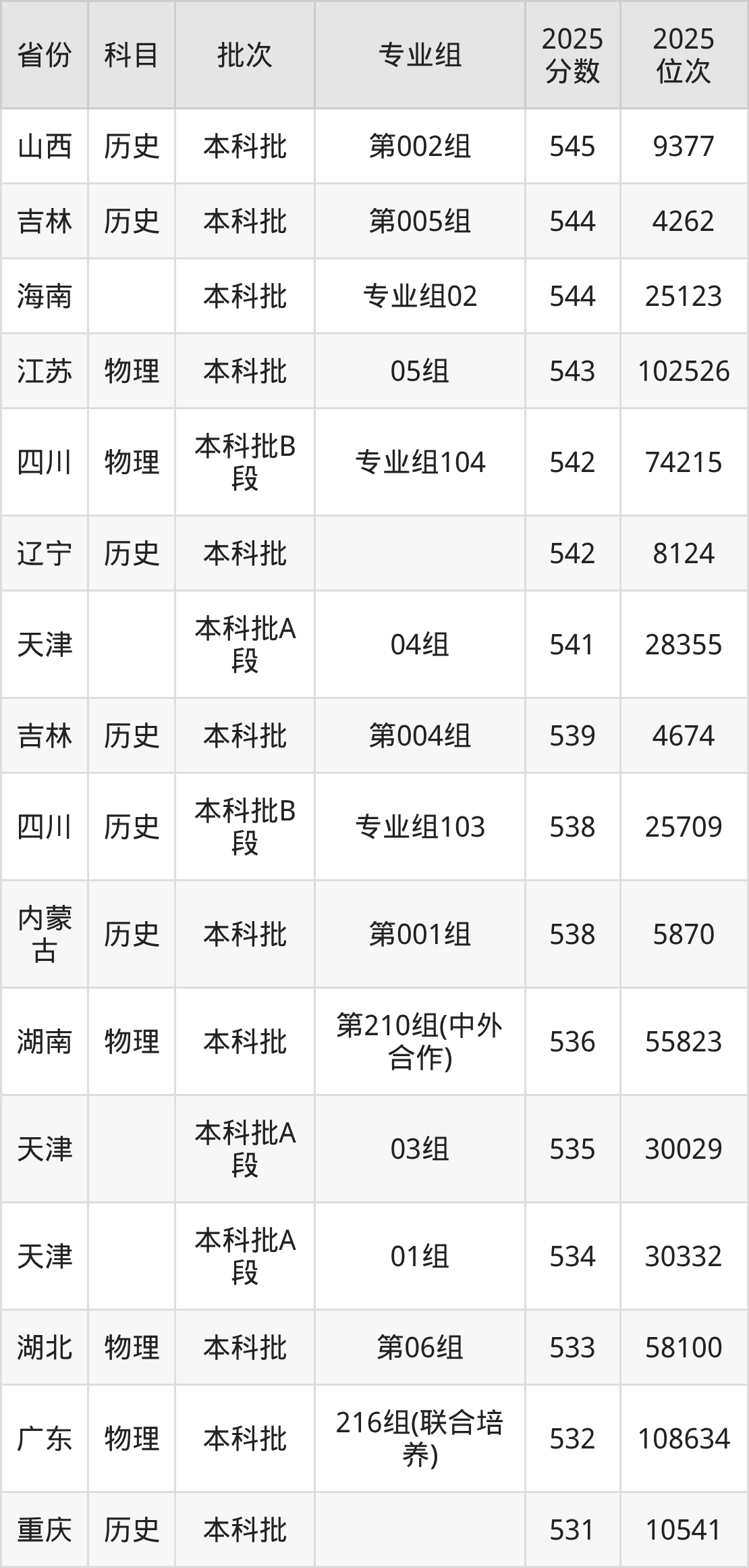 2、法学(法学+翻译(英语))(双学士学位复合型人才培养项目):600分、位次25052名;