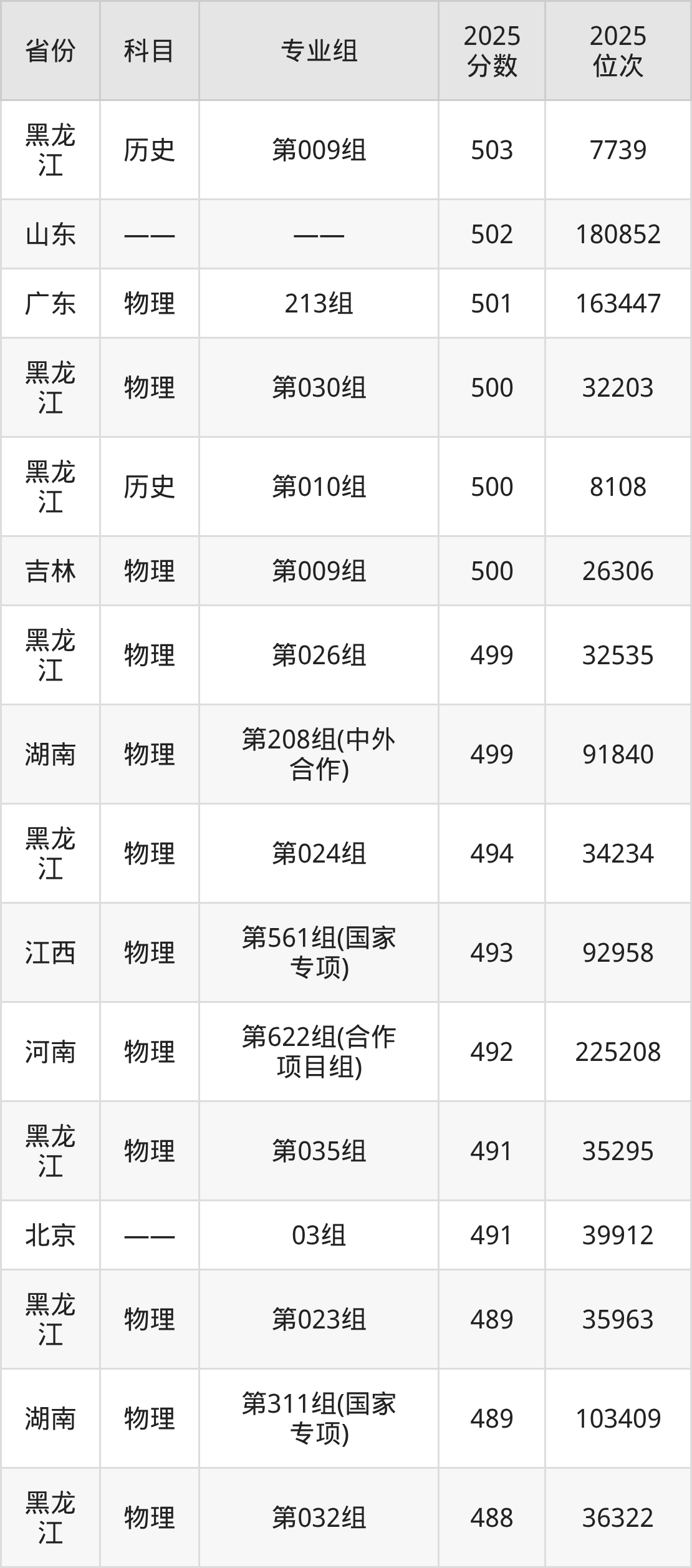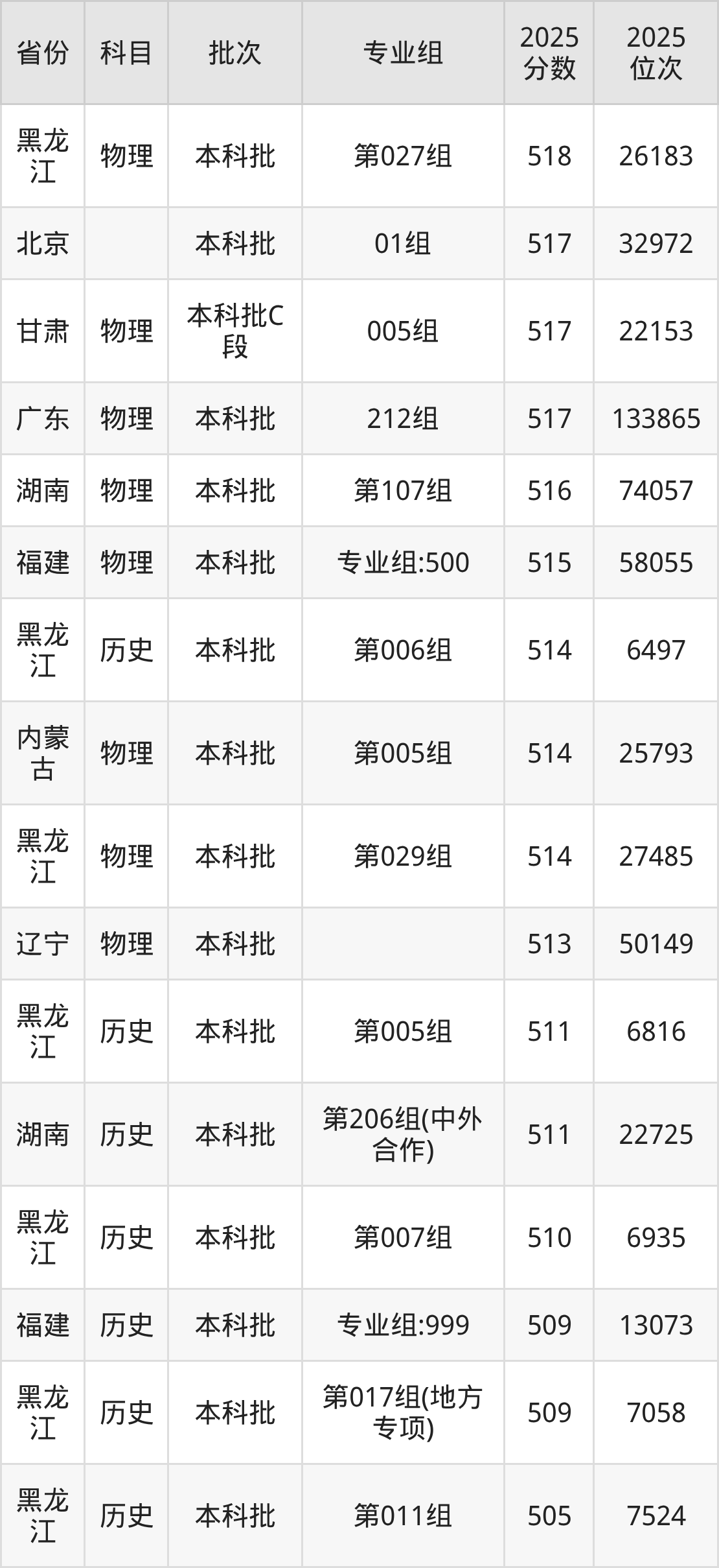 参考2025年山东省高考招录数据,按照分数线从高到低依次为大家展示黑龙江大学各个专业录取分数线。