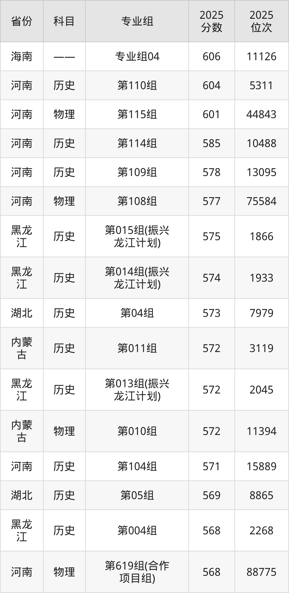 2025年黑龙江大学全国录取分数线346分到606分,录取最高在海南(专业组04)、录取最低在吉林(物理类第010组)。
